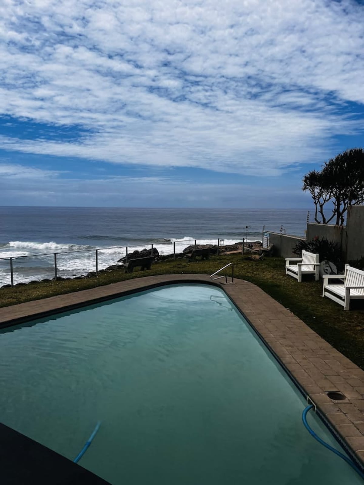 A beautiful, comfortable cottage with unobstructed sea views and its own private access to the beach. Ideal to spend time away with family and friends. The property boasts a swimming pool and braai facilities set in a beautiful tropical garden. The large, covered patio is perfect for relaxing or entertaining. The cottage has an inverter and battery back-up power as well as water storage tanks.