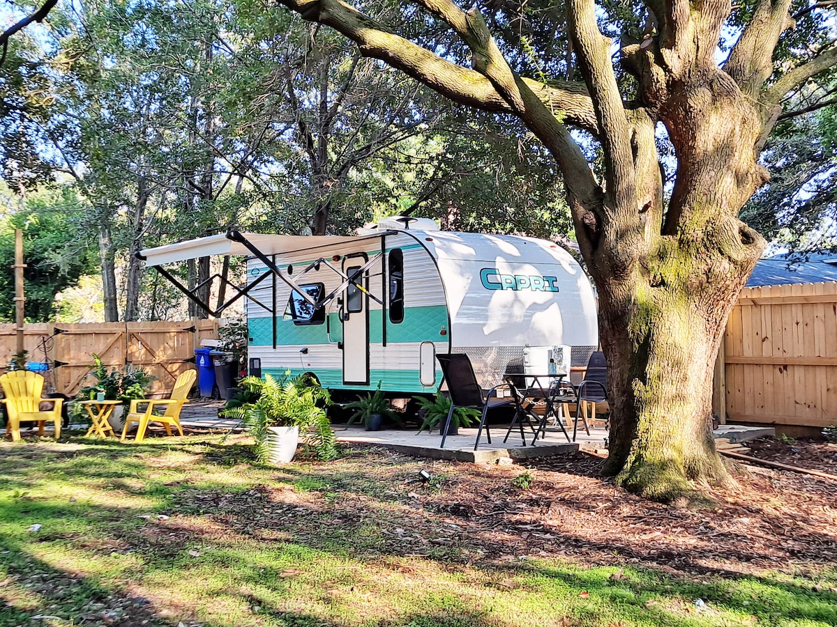 Our "Backpacker" is a cute and cozy 96 sq.ft. of tiny house nirvana. Situated on a small tidal slough, it provides a beautiful natural setting for reflection and appreciation of that which is good in life. For those looking for luxury, the Backpacker is not for you (you may encounter bugs and it's really hot in summer). However, the Backpacker has a pretty cool vibe, and is extremely convenient to historic Charleston and Funky Folly Beach. The Backpacker is for backpackers and nature lovers.