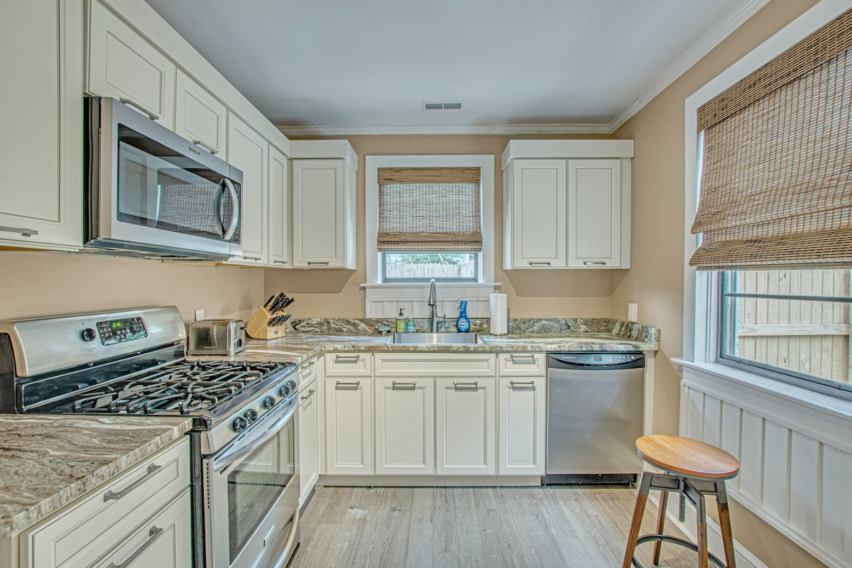 Nestled in an adorable Park Circle neighborhood this home is close to local beaches, live music, great restaurants, and historic downtown Charleston. Park Circle boasts little boutiques and great restaurants just 1/2 mile from our Bungalow. Walk, bike or drive to grab a bite to eat, browse the shops or hang out at a brewery. The Swordfish Suite Charleston is a modern, open-concept home with chic decor, luxury amenities and a very comfortable living space. There is a private fenced backyard!