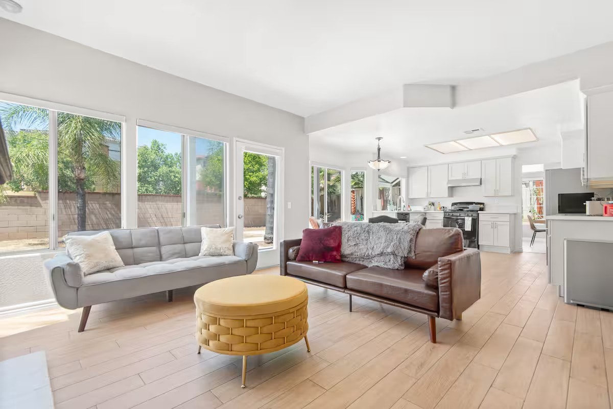 Relax with the whole family at this cozy yet modern home. Equipped with 3BR, 2BA, dining and lounging, and AC. Less than a 10 min drive from Downtown Riverside and right next to the University of California, Riverside. A beautiful citrus field is located just outside of your doorstep. Brand new built house, with fully new furnishings.