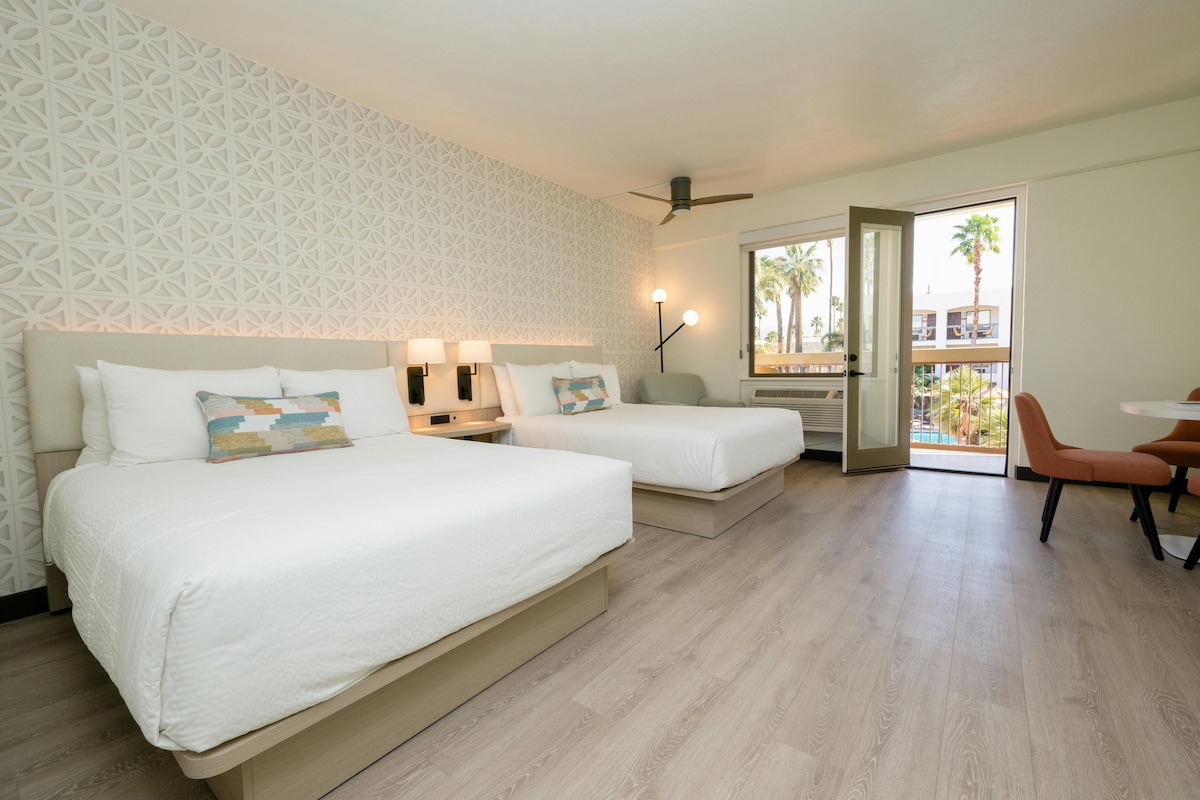Welcome to The Cole, where the spirit of Palm Springs comes alive in every detail. ✔ Each room offers stunning pool and mountain views, creating the perfect setting for a relaxing escape. ✔ Our spacious outdoor courtyard invites you to unwind in style, whether you're lounging poolside or sipping a refreshing cocktail from Freddie’s Kitchen our Modern Bistro and Bar, open Wednesday through Sunday. Come experience the magic of Palm Springs with us.