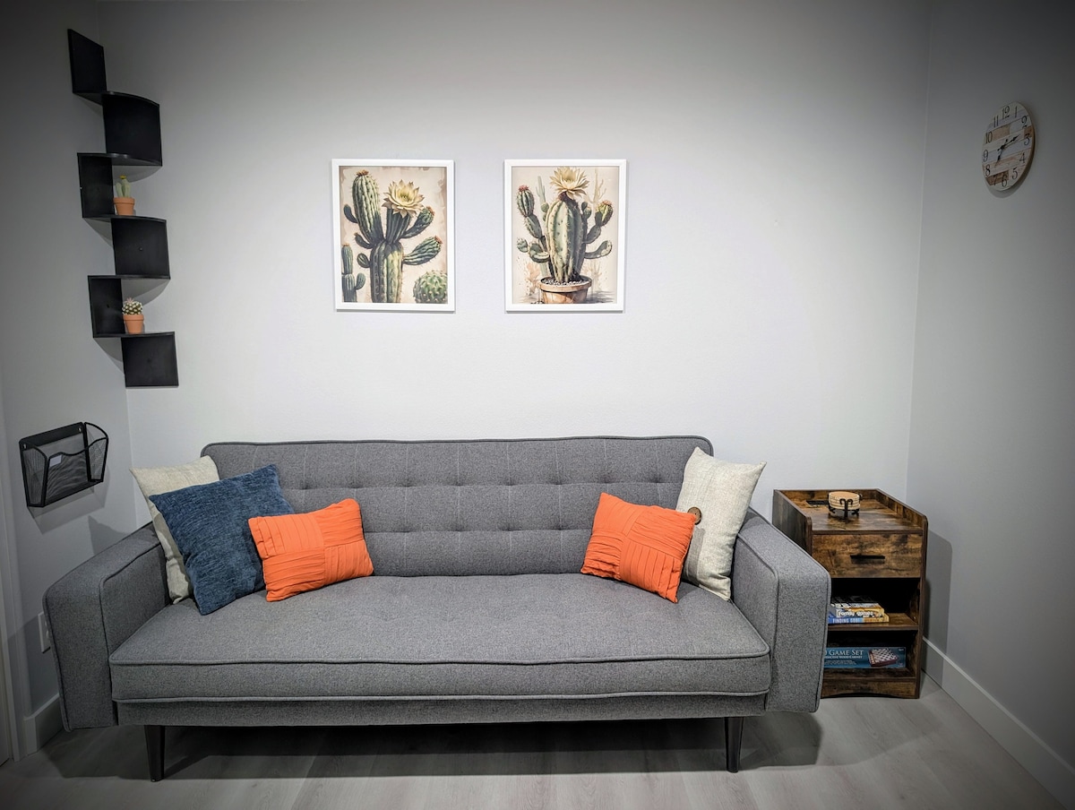 Escape to our tranquil Guest Quarters retreat, nestled in the serene rural surroundings of Jurupa Valley. With its own private entrance and seamless self check-in, this peaceful retreat offers a large, completely private, lush outdoor patio space, with a shared pool/backyard space. The estate is situated on a secluded cul-de-sac 10 minutes from Ontario Int. Airport, UCR, and CBU, with easy freeway access. In-N-Out Burger, Raising Cane's, Chipotle, & Aldi’s Grocery walking distance away! 🏳️🌈
