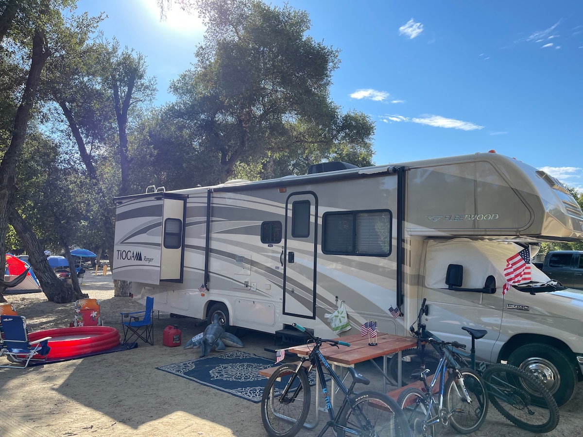 Spacious, beautiful Cougar Fifth Wheel right in the heart of San Juan Capistrano! Walking distance to the historic Mission, charming Los Rios District, and River Street Marketplace with restaurants, live music, boutiques, a petting zoo, golf, and shopping. Bike to Doheny Beach in minutes on the river trail. The seasonal trolley goes to Laguna Beach and back down to San Clemente. Private glamping but in the middle of town! The perfect getaway to get your beach fix.