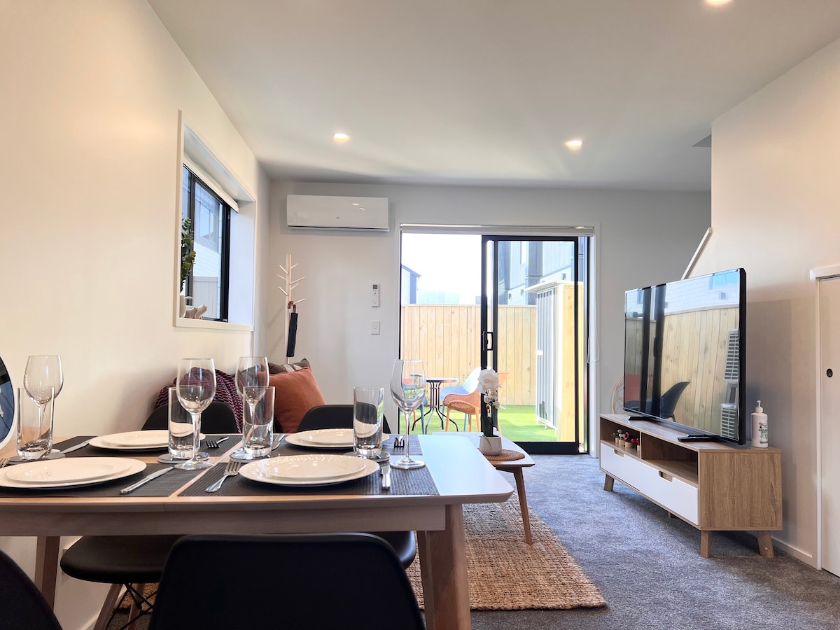Welcome to our beautiful home located in the heart of Christchurch, perfect for families seeking a comfortable and convenient stay! This home features a great balcony view, offering stunning glimpses of the cityscape. With 1 queen bed, 2 singles and a floor mattress, can accommodate 5 guests. Equipped with all modern amenities, kitchen, high-speed Wi-Fi, Smart TV, and Alexa. Located close to restaurants, cafes, and shops, this apartment is the perfect base for exploring Christchurch.