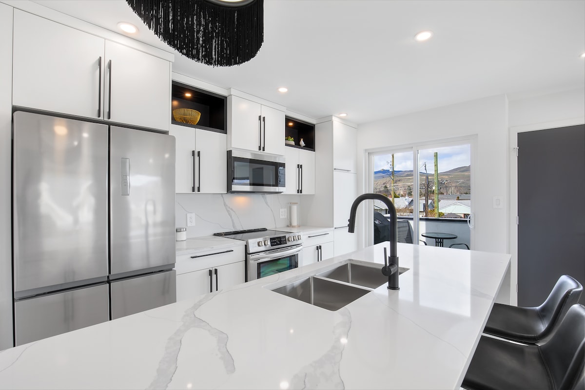 Welcome to The LOFT!! Experience this new, High End Luxury Stay with your own private hot tub! Located 3 min to MacArther Island, 2min from the airport, 8min to downtown & 45min from Sun Peaks, this beautiful property offers the complete modern living experience for your stay! A fully equipped kitchen, glorious beds, smart TV's, in suite laundry, bbq, private balcony's, private yard with parking and much more!