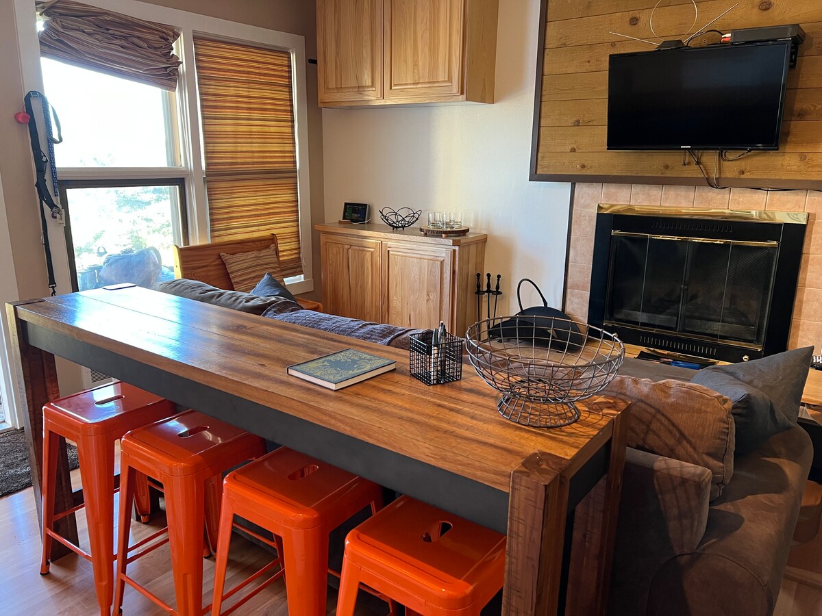 Mt. Spokane Wilderness Getaway: fireplace, hot tub