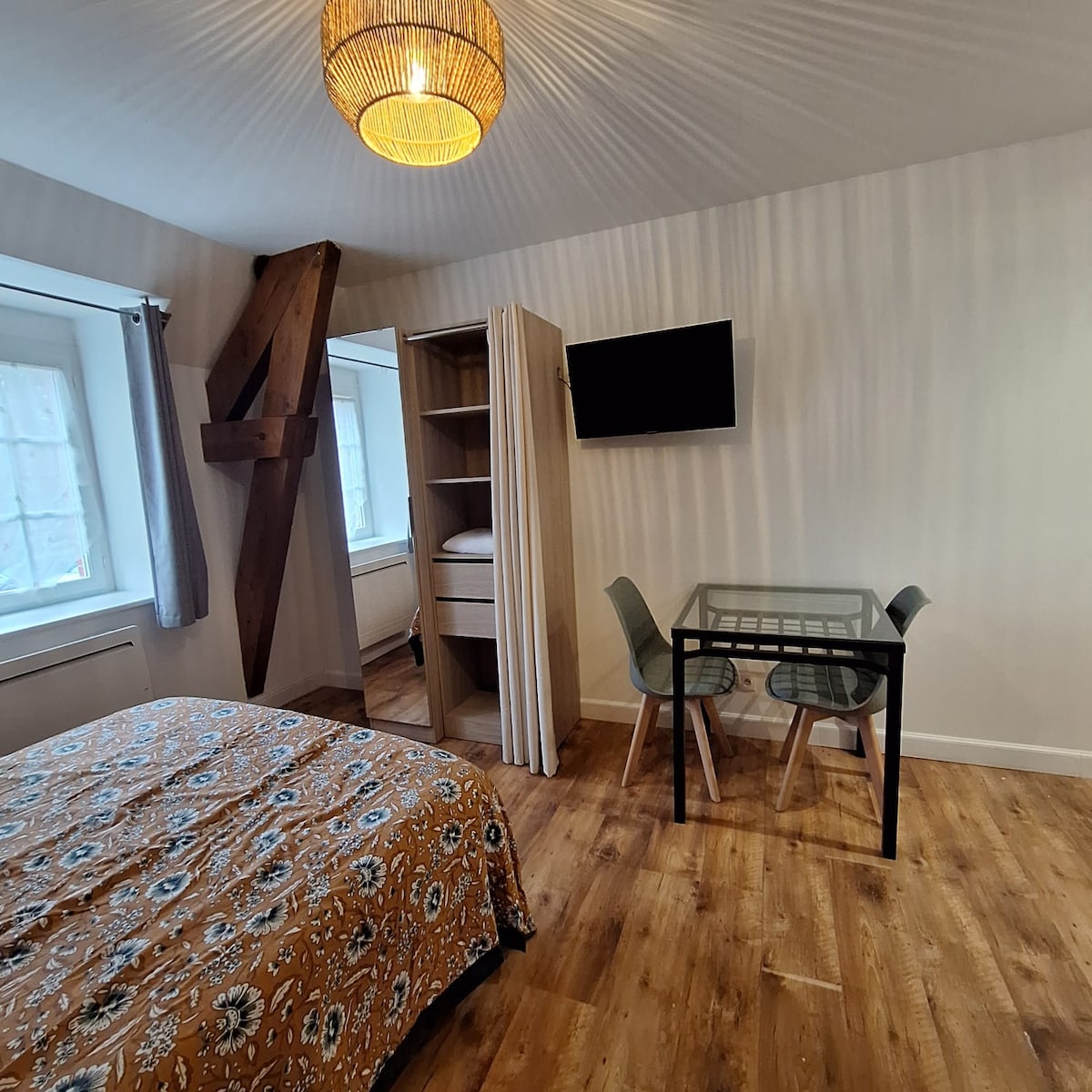 Grand appartement de charme au cœur d’Alençon Spacieux 110 m² en plein centre d’Alençon, à deux pas des commerces (boucher, primeur, boulangerie…). L’appartement dispose de 3 chambres, 2 salles de bain, et de tout le nécessaire pour un séjour confortable, en famille ou entre amis. Lumineux, chaleureux et parfaitement équipé, il offre un cadre idéal pour découvrir la Cité des Ducs à pied ou à vélo. Literie de qualité, cuisine équipée, Wi-Fi rapide : tout est pensé pour votre confort.