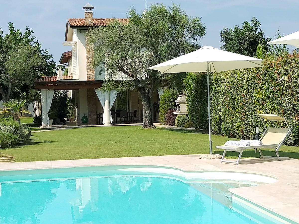 位于海洋和山丘之间的私人泳池别墅