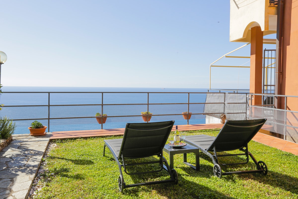 An oasis of peace and tranquillity among the olive trees and with magnificent sea views, strategically located uphill, just a few minutes away from the coast, between Cinque Terre, Sestri Levante, Portofino, Rapallo & Genoa. Two-bedroom, two-bathroom renovated apartment in a 2-story independent villa with long balcony and wide garden terrace facing the Tigullio Gulf and Portofino promontory. Tourist tax: 1 Euro per person for the first 7 nights, excluding children under 12
