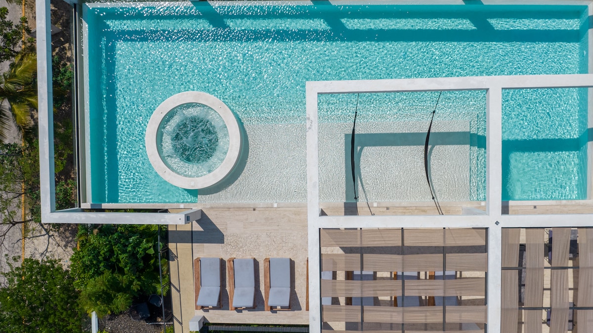 ★ READY FOR FEBRUARY 2026 ★ ❗️PLEASE READ EVERYTHING❗️ New building uniquely situated on 5th Avenue in Playa del Carmen (away from crowds), about 200 meters / minutes walk to the Beach. Great for groups/couples. ➤ Surrounded by restaurants & entertainment ➤ Steps from 5th Ave & Beach ➤ Walk Score 92/100 close to everything ➤ Private Pool Sun lounging/Grill/Dining area ➤ 3 private balconies ➤ Elevator ➤ Rooftop pool ➤ Equipped Kitchen ➤ Dining for 6 ➤ Washing machine ➤ Dishwasher