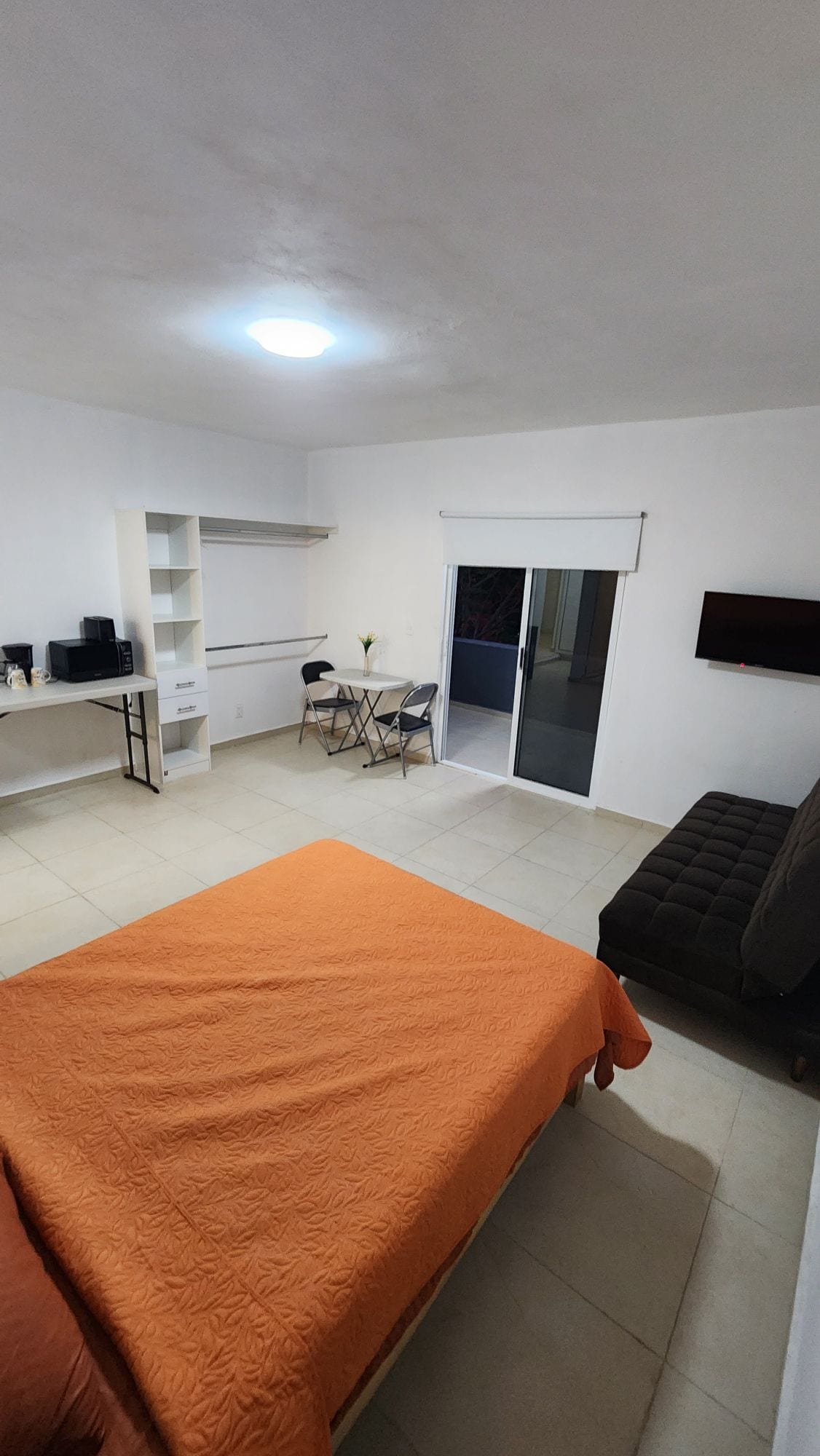 Apartamento tipo estudio con cocineta integrada especialmente diseñada para parejas o amigos, ubicado a metros de la famosa 5ta avenida. Cercanía a todos los espacios de Playa del Carmen así como de una variedad en bares, restaurantes, tiendas de supermercados, etc. Se proporciona servicio de LIMPIEZA diaria y acceso a la alberca en la terraza.