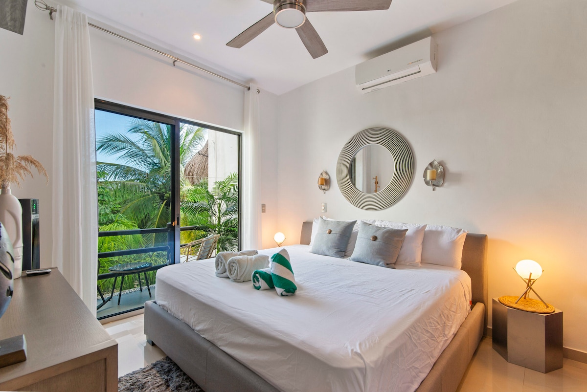 Jungle Oasis Loft w/ Private Plunge Pool & Terrace! Escape to this stylish 2nd-floor loft with a private terrace & plunge pool overlooking lush jungle views! Enjoy free bikes during your stay, a fully equipped kitchenette, and 24/7 security for peace of mind. Designed for couples, solo travelers & digital nomads, this modern retreat is cozy,quiet,and surrounded by nature just 15 min from the beach & downtown! Relax in your kingsize bed, dip in your pool,or explore nearby cenotes,beaches & more!