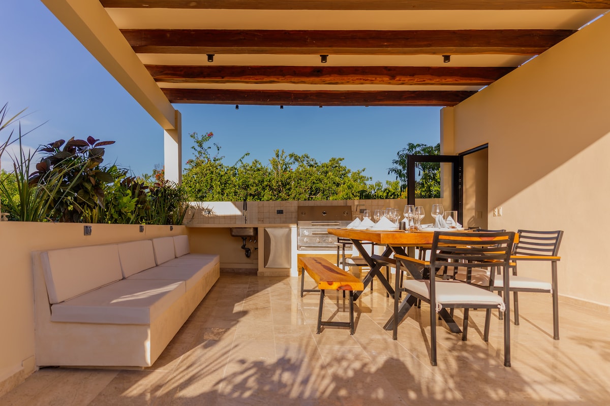 Tuluminati House was born from our passion for Tulum, its Bohemian Chic Luxury and our taste for refinement and comfort. We would like to share this passion by introducing you to our Penthouse in Aldea Zama Premium located in the heart of Tulum. In Tuluminati House we hand picked and prepared every detail with love and passion where you will enjoy a unique experience. Includes daily Maid Services (Cleaning+Local Cooking Breakfast/Lunch)