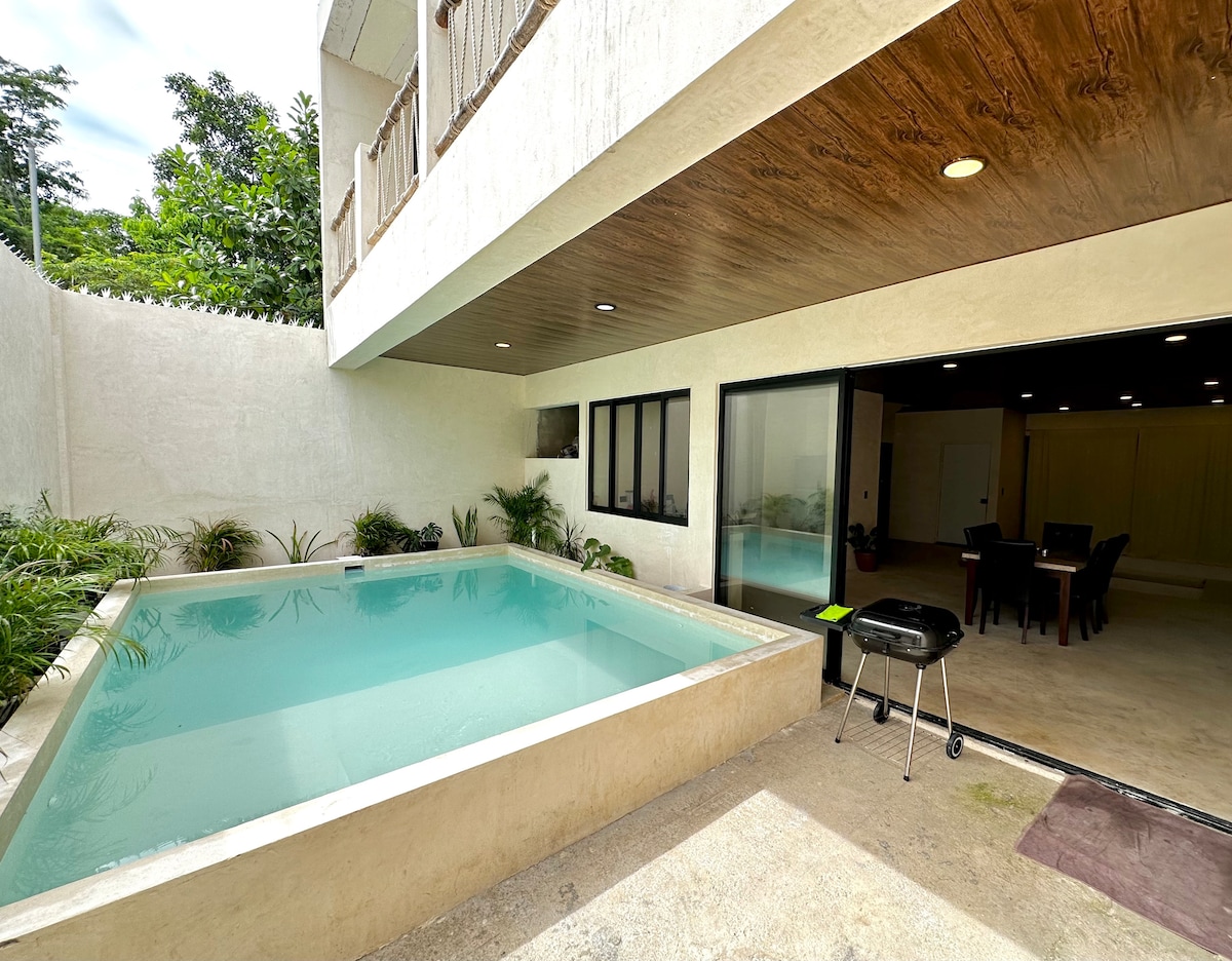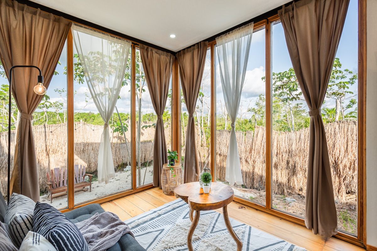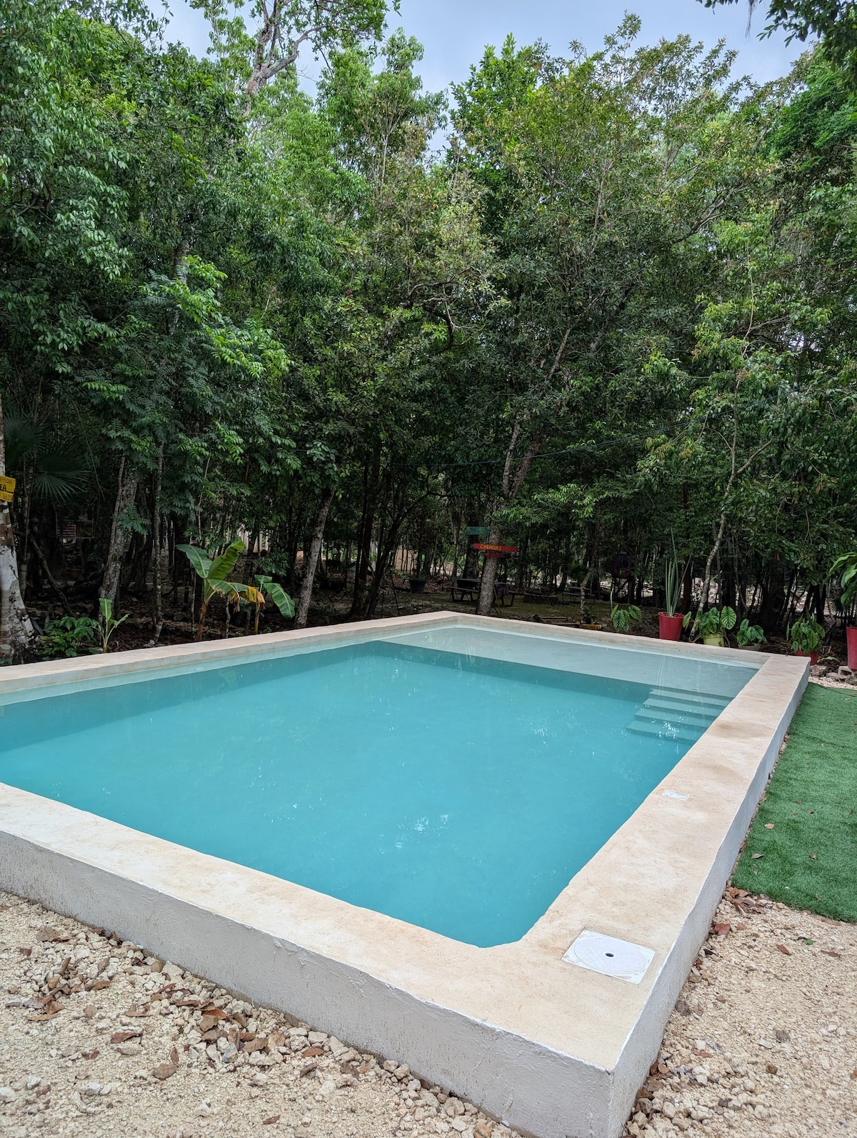 Unique place in Tulum with natural wood cabins that blend elegance and comfort. Our cabins are spacious, cool, and fully equipped. Located in La Veleta, you’re just 5 minutes from the center and 15 minutes from the beach. Steps away from restaurants, bars, and shops. The cabins feature elegant pine wood design and are surrounded by a tropical oasis with hanging gardens, creating a jungle-like atmosphere perfect for your getaway. Enjoy a refreshing pool to complete your relaxation experience.