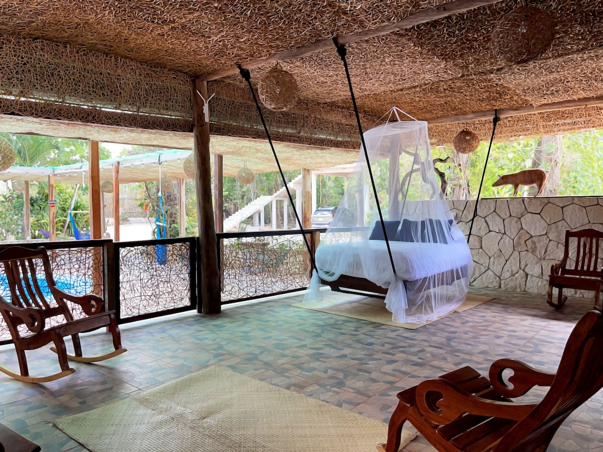 Deseas dormir entre la naturaleza y despejarte de todo? Rodéate de animales exóticos, nada en un cenote, y explora la naturaleza, perfecto para aquellos que se quieren desconectar y relajarse en el corazón de la selva. A solo 12 min de la playa de Puerto Morelos, 35 de Cancún, 30 de Playa del Carmen y 70 de Tulúm. Por solo 240 pesos (aprox $12) por persona podrían obtener un delicioso desayuno. No dudes en hacer tus consulta, realizamos bodas Maya, ceremonia de cacao, temazcal, Rappe.