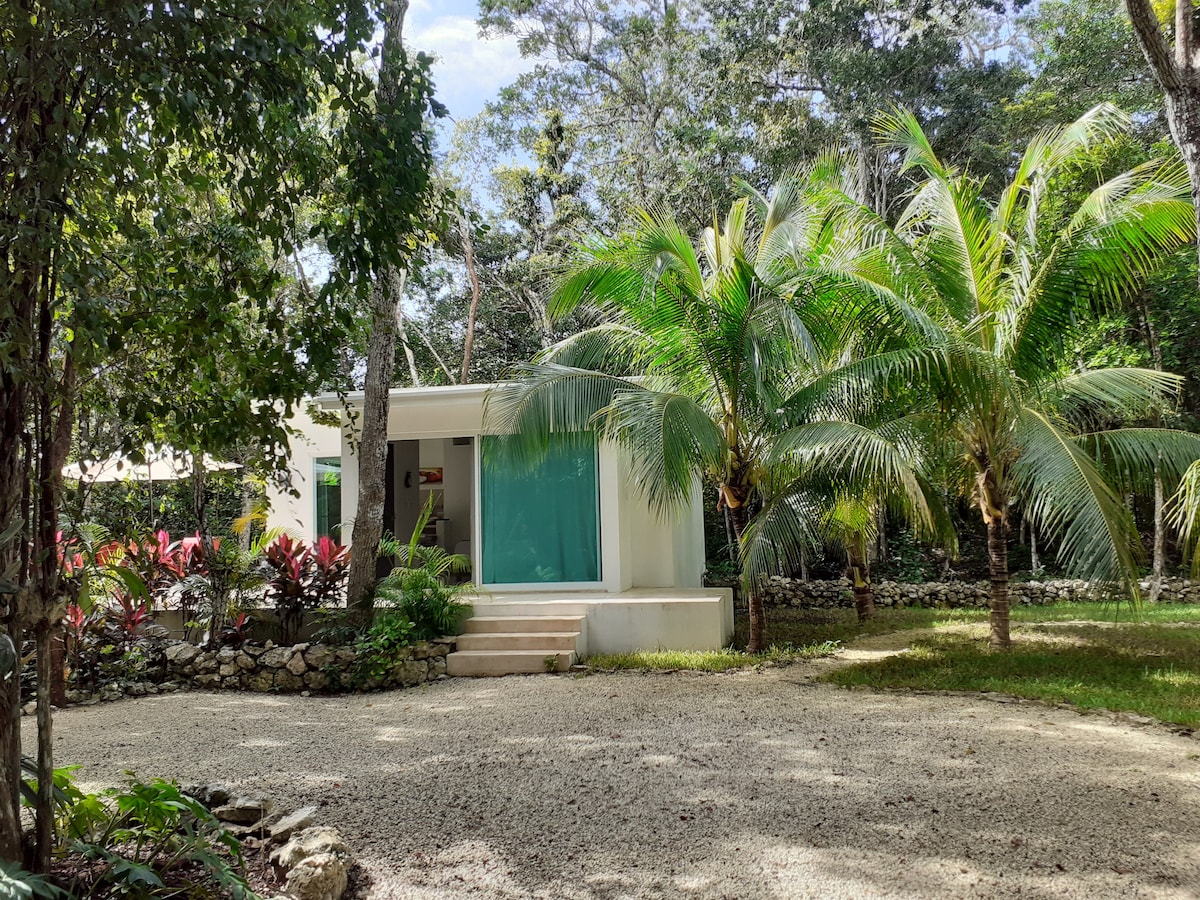 THE JUNGALOW! Not fancy, just FUN! Jungle Family Camp is the best place to spend an adventurous holiday without breaking the budget. A cozy camp-like stay in our small studio bungalow. King size bed for Mom & Dad, plus pull out bed for kids. Cook your own meals in your private kitchen or outside on the BBQ. Sleep soundly all night and wake to the sound of little chirping birds. Spend your day exploring. then come back to friendly faces and comfy spaces at CAMP AKUMAL! A hosted experience!