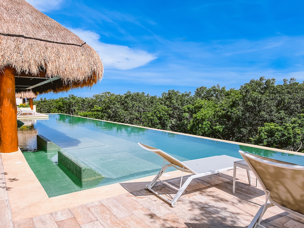 丛林氛围 • Aldea Zama • 顶楼泳池和健身房