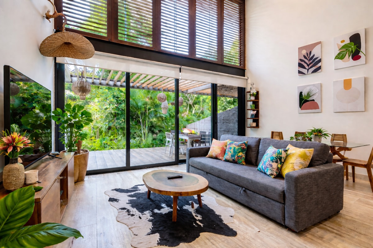 Enjoy a piece of paradise : 120m2 of privacy and relaxation with a beautiful private pool (just for you). A modern, spacious and accommodating full apartment 1 minute from the Caribbean beach, inside the luxury residence of Playacar Fase 1. *King-sized bed *Wi-fi ( good speed to work ) *Full Kitchen *10 min walk from the famous 5th avenue *1 min walk from the beach *Security guard 24/24