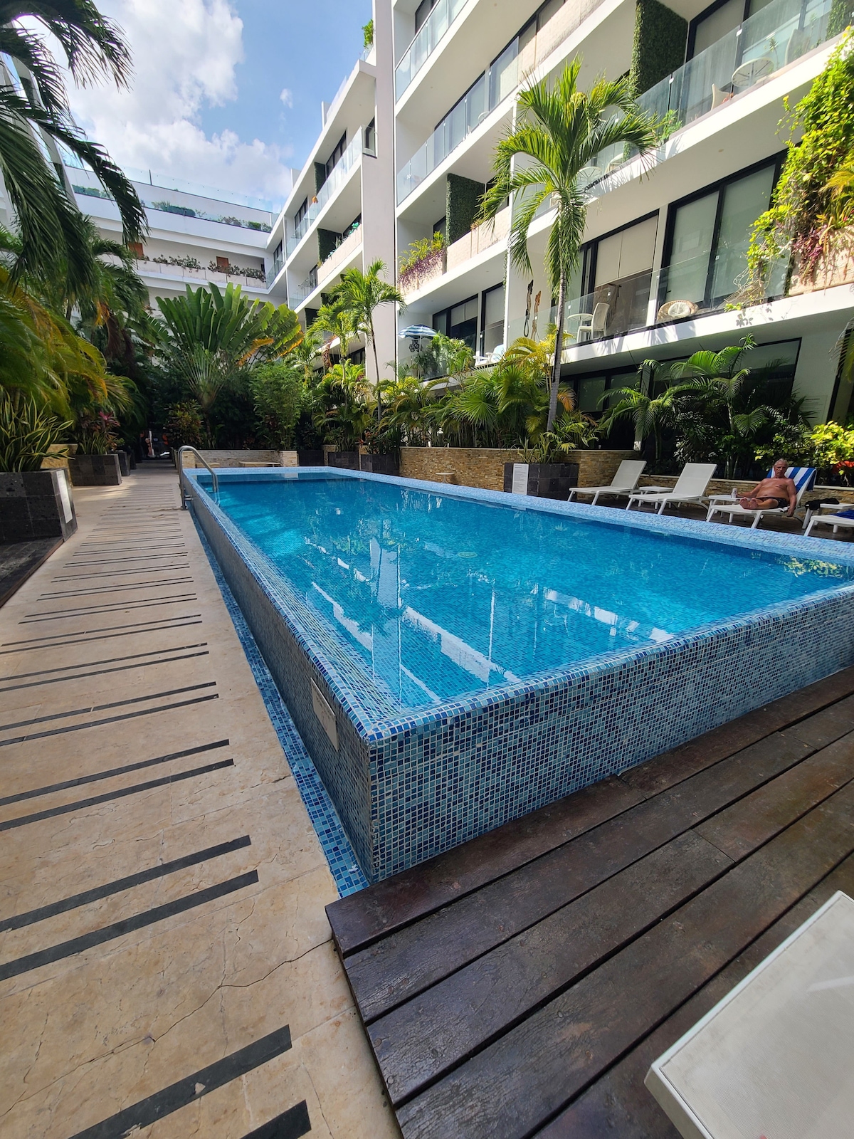 Enjoy a stylish studio just steps from 5th Ave with access to a stunning rooftop infinity pool and workout gym. Conveniently located next to a large supermarket for easy groceries and within walking distance of the beach and one of Playa’s most popular beach clubs. Perfect for couples or solo travelers looking to relax near top dining, shopping, and nightlife.