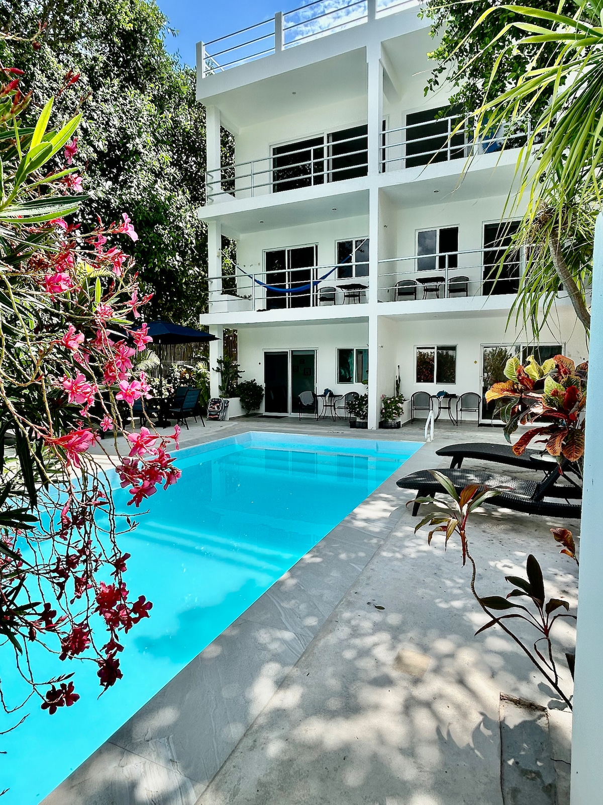 Come and enjoy a quiet and a nice place, with pool, terrace, lounge chairs and hammock. In the kitchen utensils to cook. In the bathroom we put towels, shampoo, body wash 🧴 It is close to Chedraui, you can walk there 5-8 minutes. Is one block from the Main Street Juarez Avenue, were you can take a taxi or a van. In Juarez avenue are few small restaurants, laundry, groceries store Oxxo. It is 3 blocks from hiway where you can take the vans to Tulum or Cancún. 20 minutos walking to the beach.