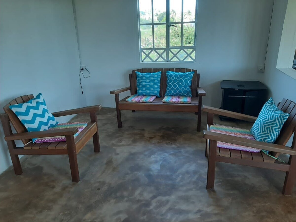 Maison indépendante, joliment décorée dans un style scandinave, offre un espace serein et tranquille à la Rodriguaise. Elle comprend 2 chambres, chacune avec sa propre salle de bains et bien ventilée. Le grand séjour et la cuisine équipée ajoutent à son confort. Elle peut accueillir jusqu'à 4 personnes, idéale pour une petite famille. Vous pourrez profiter d'une vue sur la mer et du coucher du soleil chaque après-midi, avec la Baie Diamant comme toile de fond.