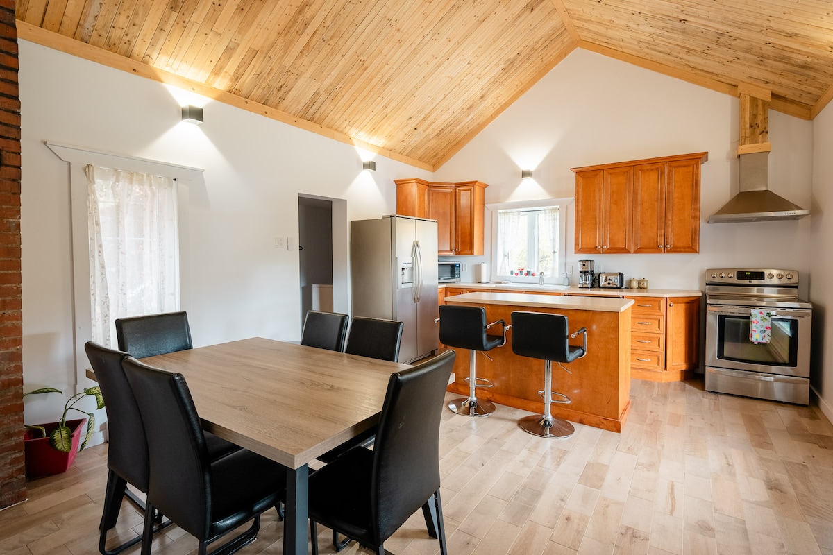 Ce chalet a beaucoup de cachet et contient plusieurs petite merveille comme par exemple la vue sur le fleuve et nos belles montagnes. Vous y trouverais le confort total dans ce magnifique chalet. Ça vaut vraiment la peine de venir voir ce magnifique paradis. Un spa privé pour 8 personnes Bienvenue aux travailleurs sur semaine !! Numéro CITQ: 128461 Heure d’arrivée 15:00
