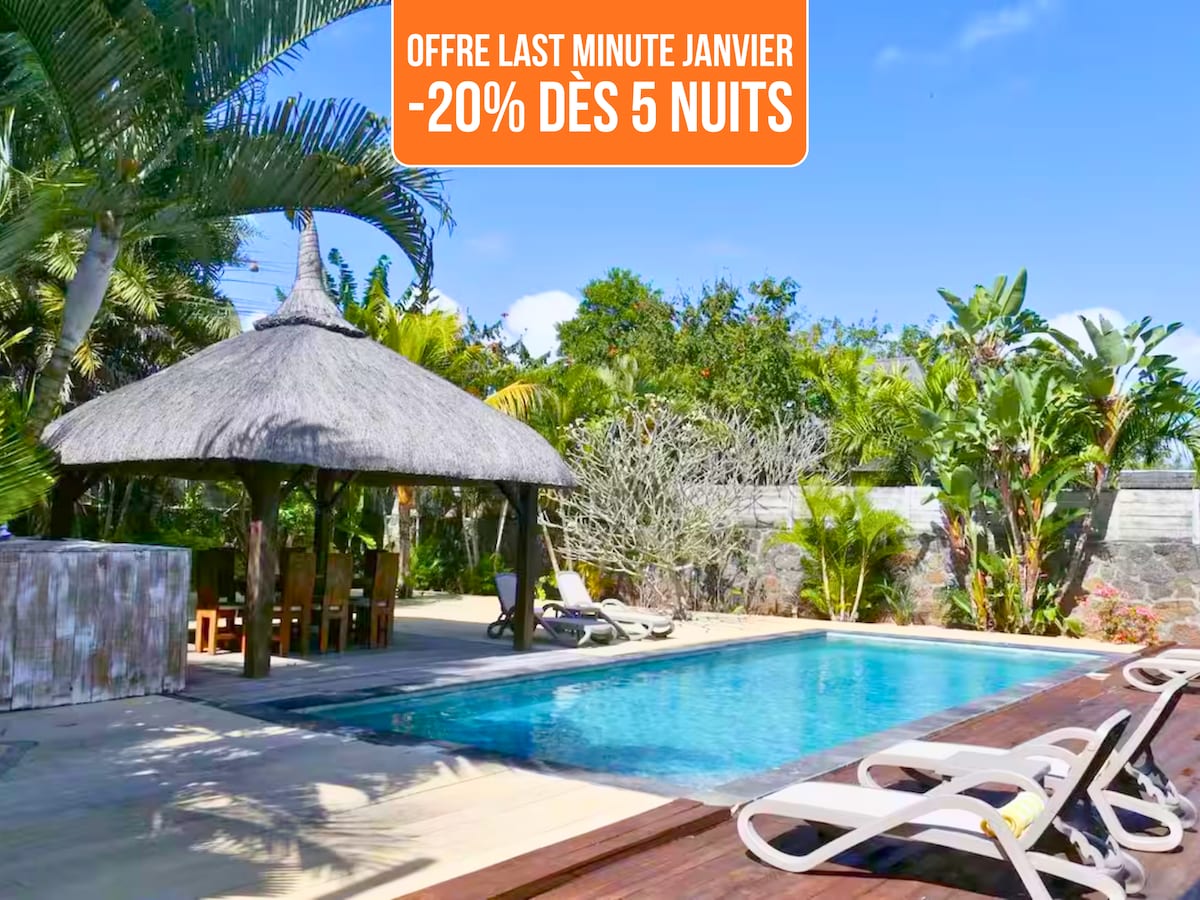 Venez découvrir notre villa à Grand Baie ! Moderne et spacieuse, nous serions heureux de vous y accueillir. Elle dispose de 3 chambres climatisées dont une suite parentale (lit 180 cm & 2 de 160), 3 salles de bain avec WC, Smart TV, Cuisine entièrement équipée avec lave-vaisselle et Nespresso, espace buanderie, wifi. L'espace extérieur a été aménagé de façon à ce que vous puissiez passer des vacances inoubliables ! Les commerces, restaurants et plages sont à proximité en voiture environ 5 min.