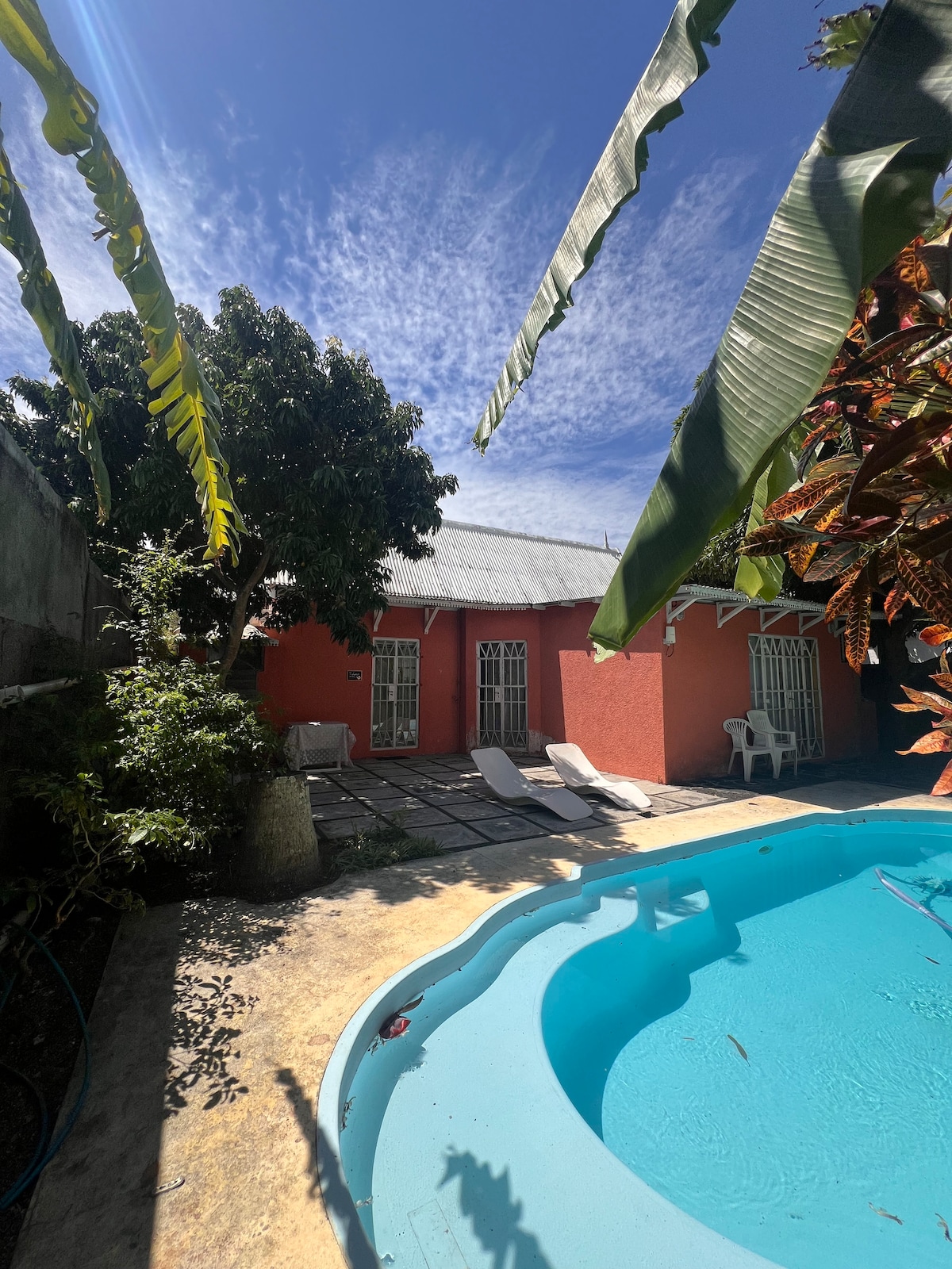Magnifique chambre d'hôte située dans le nord de l'île. À proximité des commerces, 15mins de la plage et restaurant de Grand baie. La chambre est climatisée avec des parties communes privées donnant accès à la piscine .La famille Yencana serait ravie d'accueillir un couple qui souhaite découvrir les plaisir de l'ile Maurice *Internet gratuit*Petit déjeuner Dîner Rs 400 par personne Please note that security camera or recording devices is recording the at the pool area Side of house,” “pool,”