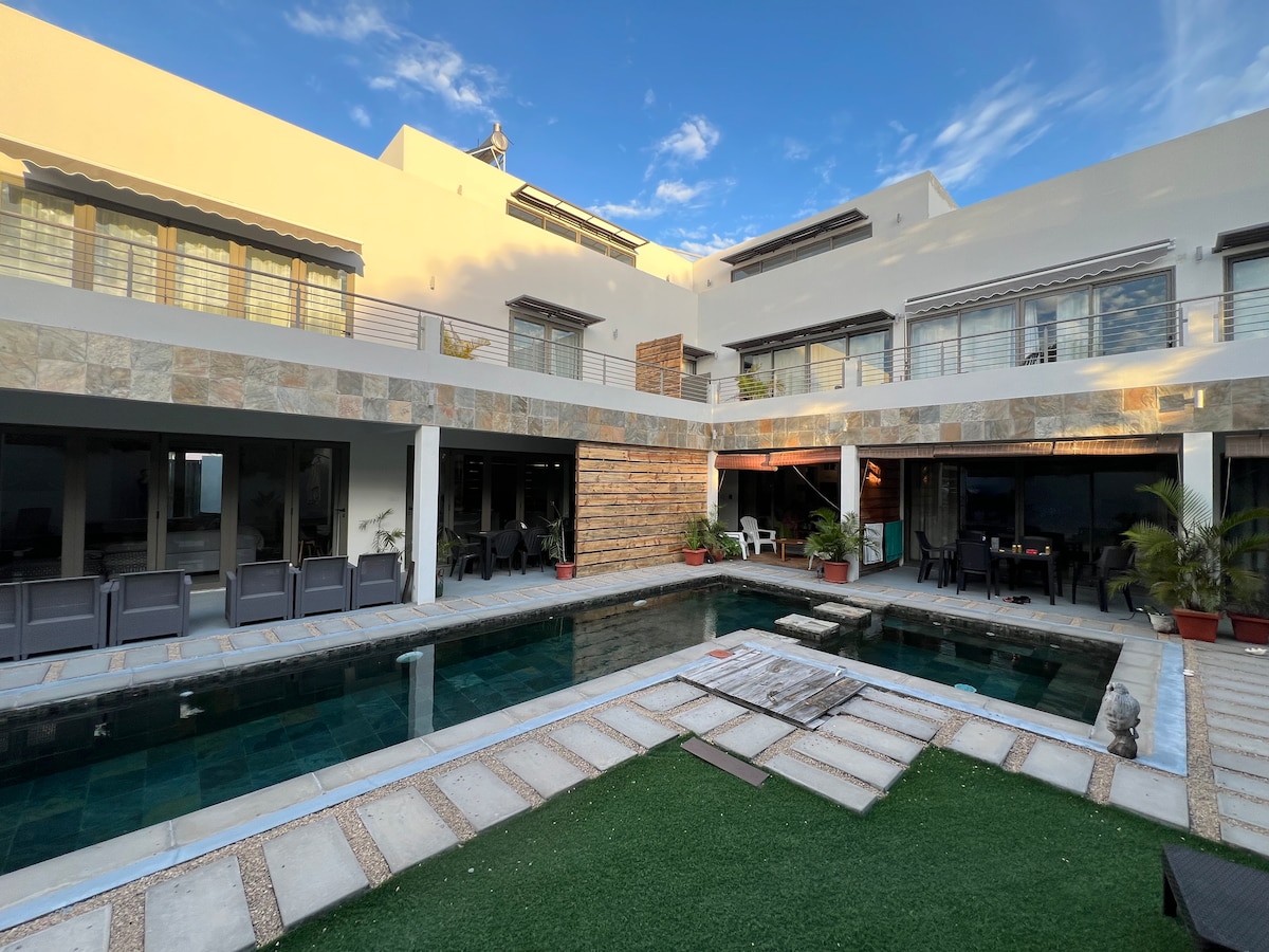 Your 1st floor apartment in a new, small guest house. You will enjoy privacy and 2 Bedrooms, 2 Bathrooms, lounge, 2 kitchens and private patio. The property has heated roof top swimming pool, gym and picnic table. Located close to private beaches and boutique hotels. Your have a large private BBQ terrace, outside seating, and access to bar and others areas. Local restaurants and hotels are a short walk. AC in all rooms. Point aux Canionniers is between Mont Choisy Beach and Grand Baie.