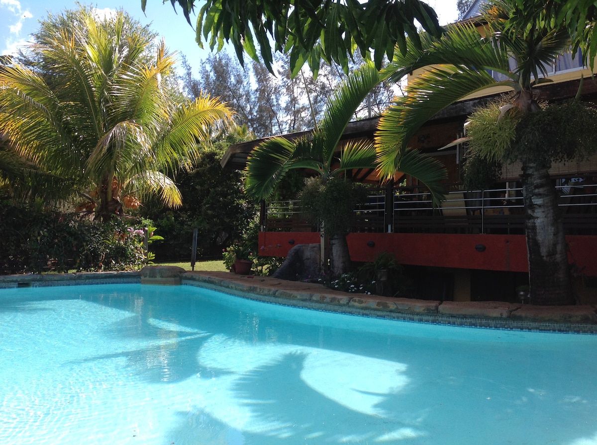 Angel Villa is a special place as it is close to everything, making it easy to plan your visit. Angel Villa is perched on the ridges of Ile aux Benitier Island with exceptional Panoramic view of the West coast at both Sunrise & Sunset on one side and breathtaking views of the forest of Chamarel on the other side. The Villa is built spaciously on the edge of the forest & it offer magnificent views of Le Morne Brabant Mountain Unesco World Heritage Site only 10minutes drive to the public beach.
