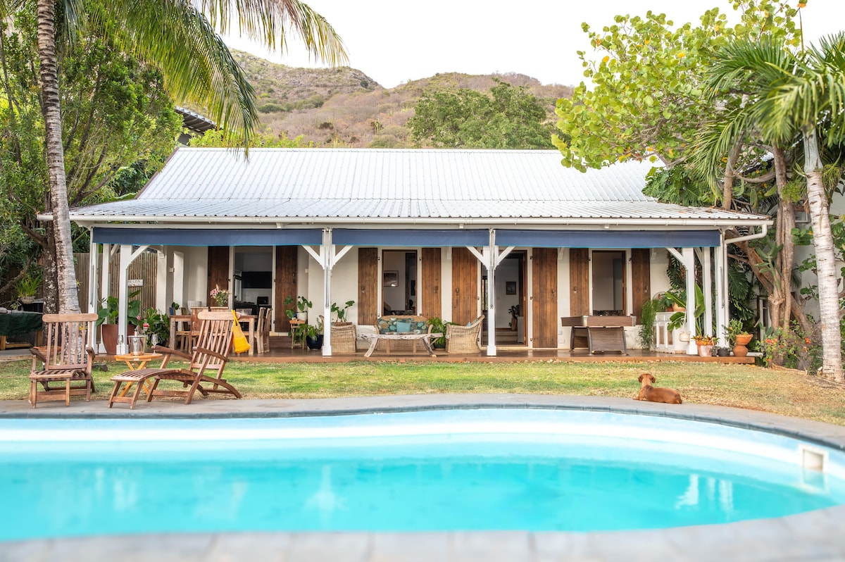 "Entre Sel et Mer" is a family beach cottage of days gone by. A place where time stood still, tucked away between the salt pans of Tamarin (sel) and the sea (mer), this completely renovated, rustic and charming 4 bedroom cottage, has open verandas, decks and an inviting pool on a white sandy beach. A perfect place to unwind, enjoy and reflect with family and friends. Admire the sunsets, dine under a starlit sky, enjoy drinks by the pool, and campfires on the beach.