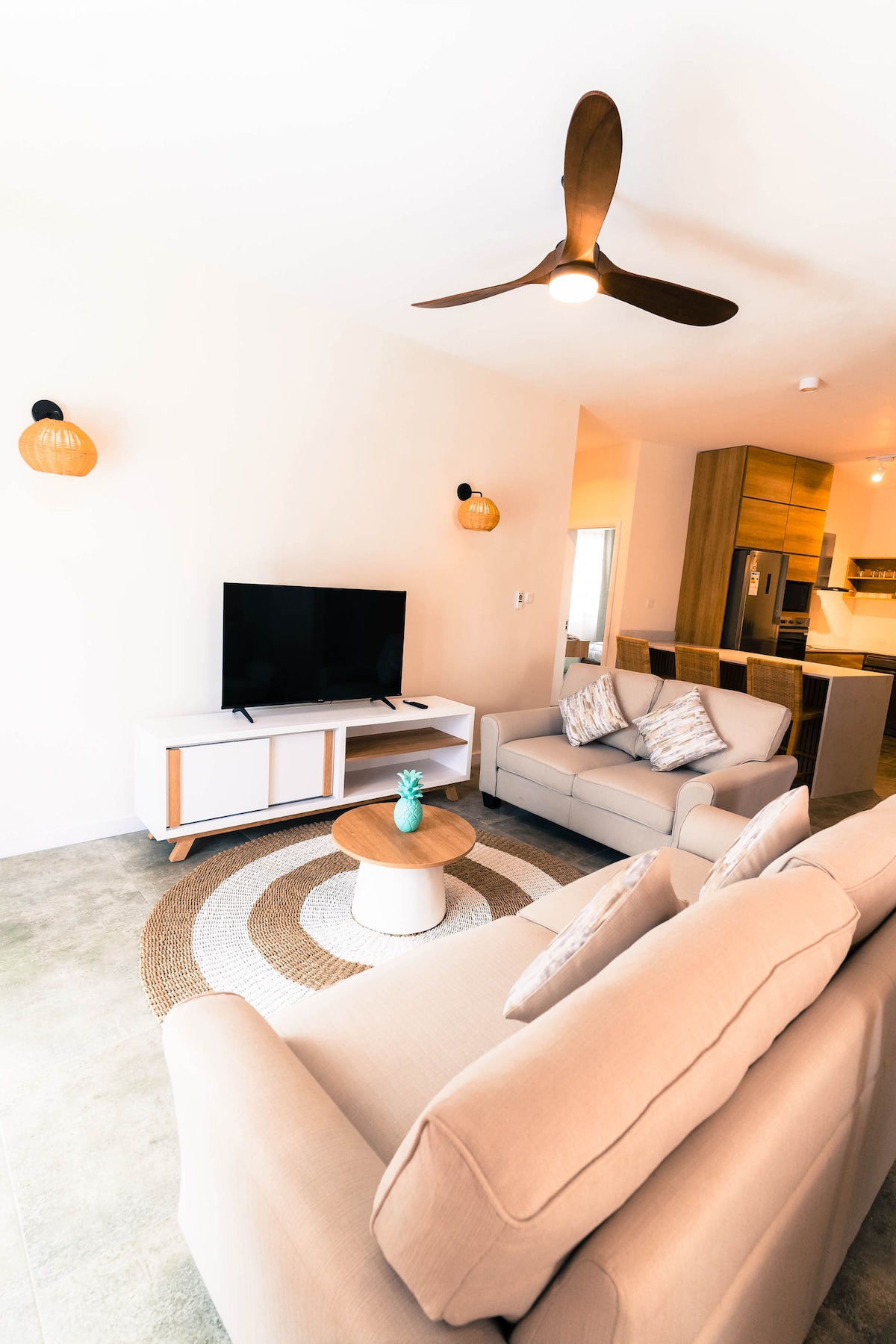 Cet appartement incarne le luxe tropical. Deux chambres en suite offrent intimité et confort, avec l'une donnant sur une piscine à débordement et sur l'océan. Le salon spacieux s'ouvre sur une terrasse où un coin repas extérieur invite à profiter du climat idyllique. La cuisine moderne est équipée pour répondre à tous les besoins culinaires. Les résidents bénéficient également d'un accès à une salle de sport bien équipée et d'un parking sécurisé, offrant un mode de vie exclusif et pratique.