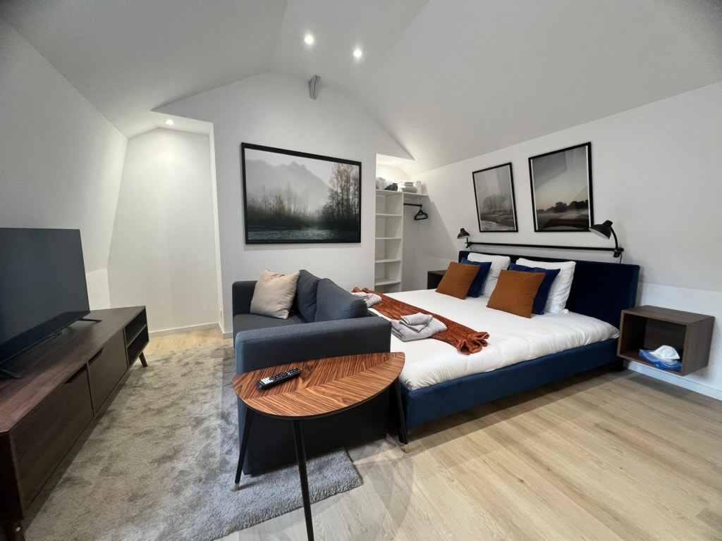 Superb, spacious and bright apartments in an architect-designed house! Sleeping 8 and 4 people, our 2 apartments feature very large bedrooms with king-size beds (180cm). The living areas feature fully-equipped kitchens, living rooms and lounges. Large bay windows offer unobstructed views of the garden and swimming pool. The basement features a wellness area with hammam, jacuzzi, relaxation lounge and shower.
