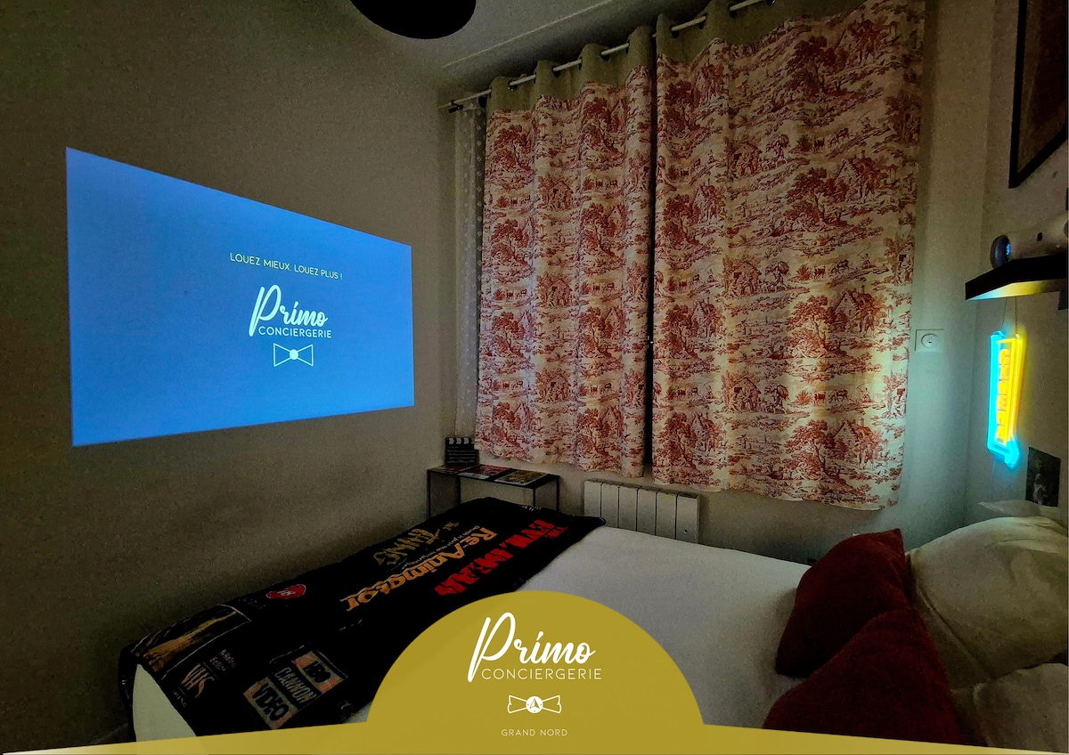 🎥 Looking for a unique cinema experience, solo or as a duo? 🎥 Discover the private "Cinemaroom" in the basement, an intimiste and exclusive place located in the heart of Arras, on Place du Théâtre ! Enjoy a modern space with a high-end projector, comfortable seating, and a cosy atmosphere. 🎬 Access all your favorite content with FREE and UNLIMITED access to NETFLIX, AMAZON PRIME, DISNEY+, and the CANAL+ live channel ! A moment of relaxation and escape right in the heart of the city! 🌟🎬
