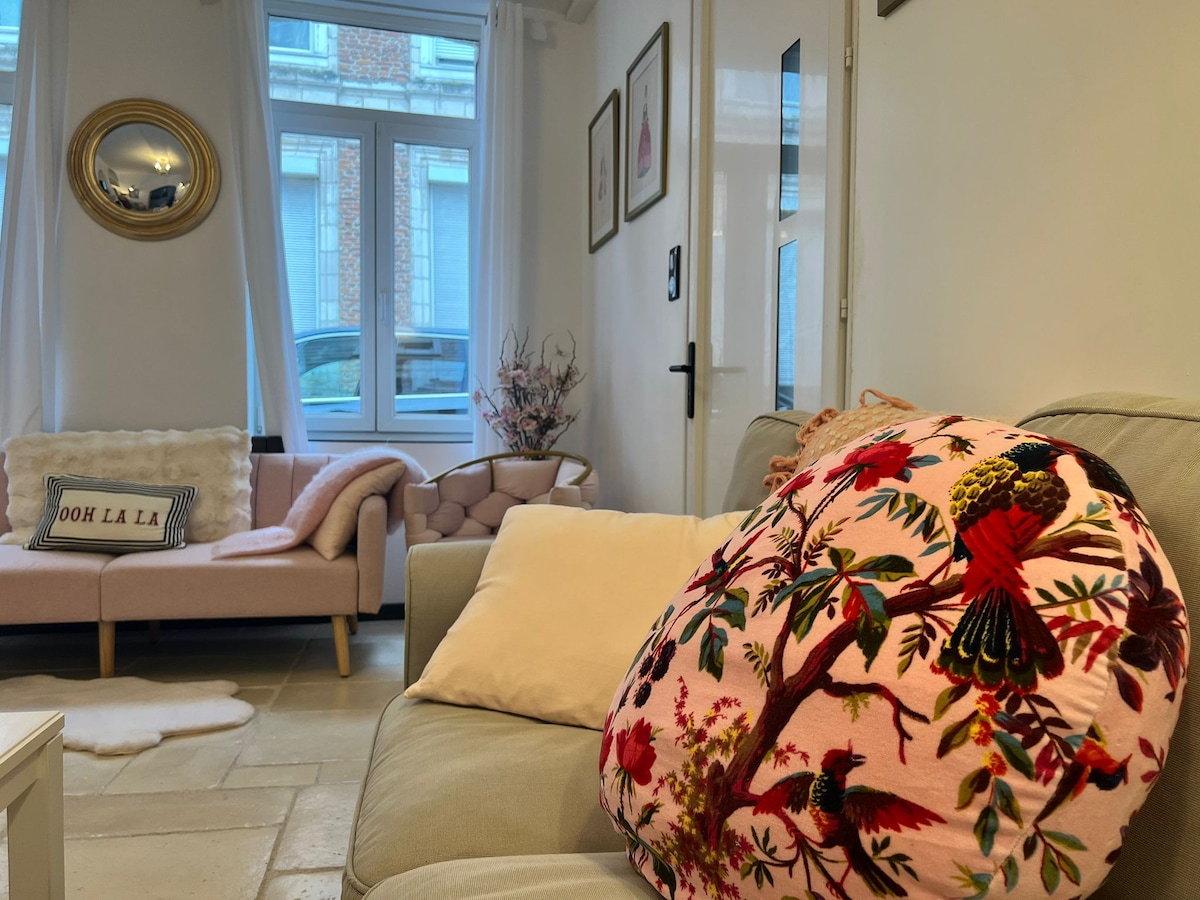 Profitez d'une maison de ville élégante et calme de 80m2, situé dans une rue à sens unique, et idéalement situé en plein centre d’Arras. La maison comprend : - Une chambre avec un lit double 160x200. - Cuisine équipée (four, micro-onde, cafetière Nespresso, grille-pain, frigo,cookeo…) - Un salon avec télévision par box TV, Netflix, Amazon Prime. - Terrasse en bois privée sans vis-à-vis