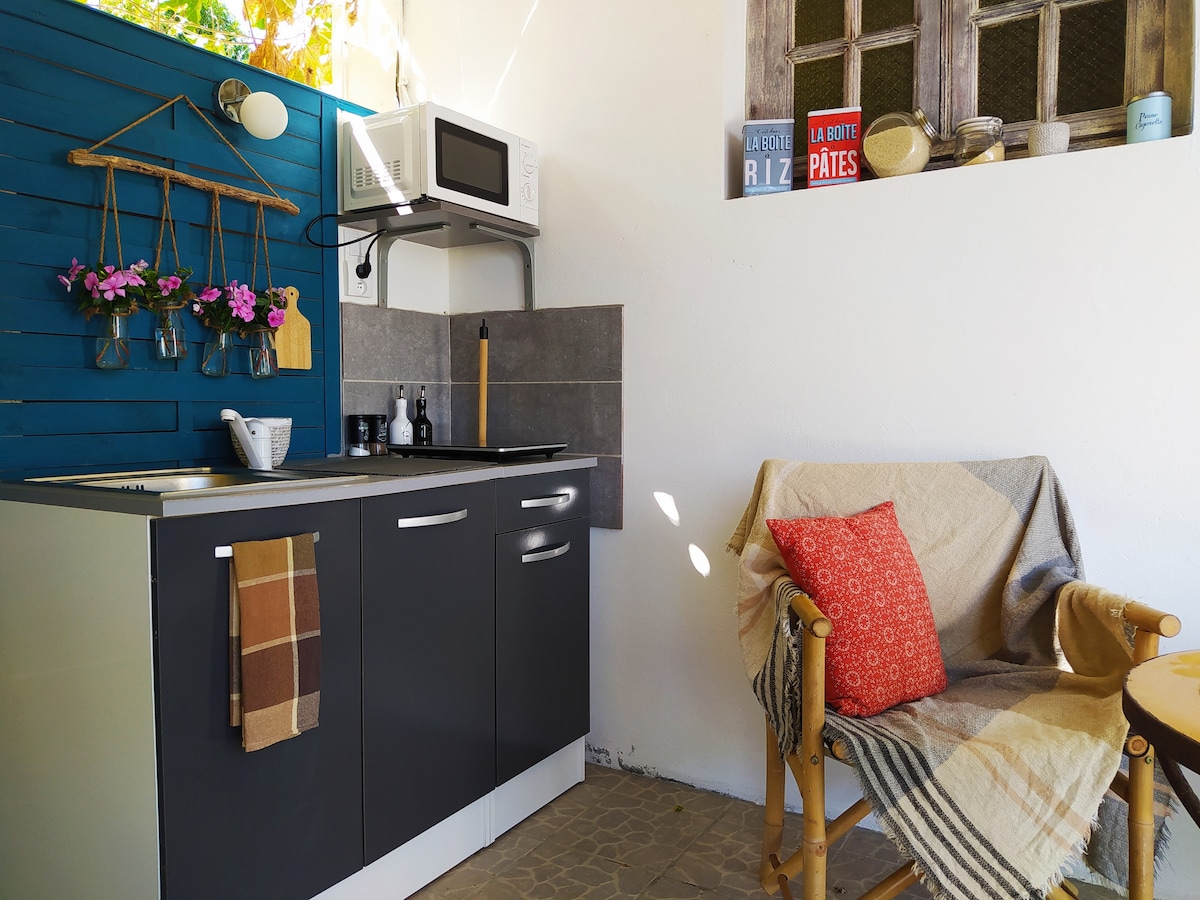 Le spacieux T2 dispose, pour le bon déroulement de votre séjour: - Accès Internet wifi gratuit. - Une cuisine équipée - Un salon avec télévision et un canapé convertible d'une capacité de 2 personnes. - Une chambre avec air conditionné, un lit Queen Size (160X200) - Une buanderie avec lave-linge, séchoir, fer et planche à repasser. - Une terrasse de 15 m² avec un salon extérieur. - Un lit pliant pour bébé peut mis à disposition.