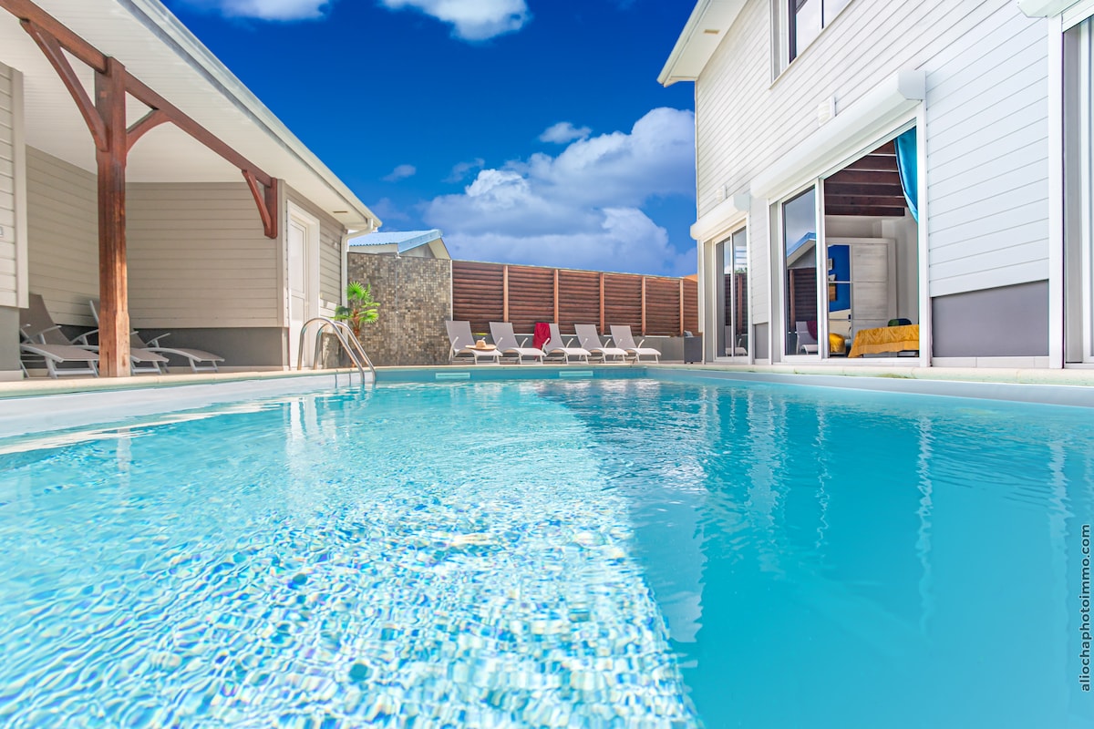 La villa ORCHIDS du nom de sa magnifique piscine se situe sur la côte SUD Caraïbes de la Martinique , 2 min des axes routiers et 10 min des plus belles plages . Cet hébergement de 70 m2 est le seul au Rez de chaussée de la villa des propriétaires . L’hébergement est composé d’une chambre climatisée avec son lit king size , salle de bain , salon avec grande TV Canal Sat , Netflix , Wifi rapide ; cuisine ouverte toute équipée et une belle terrasse ( 35 m2) ,piscine sécurisée et transats.