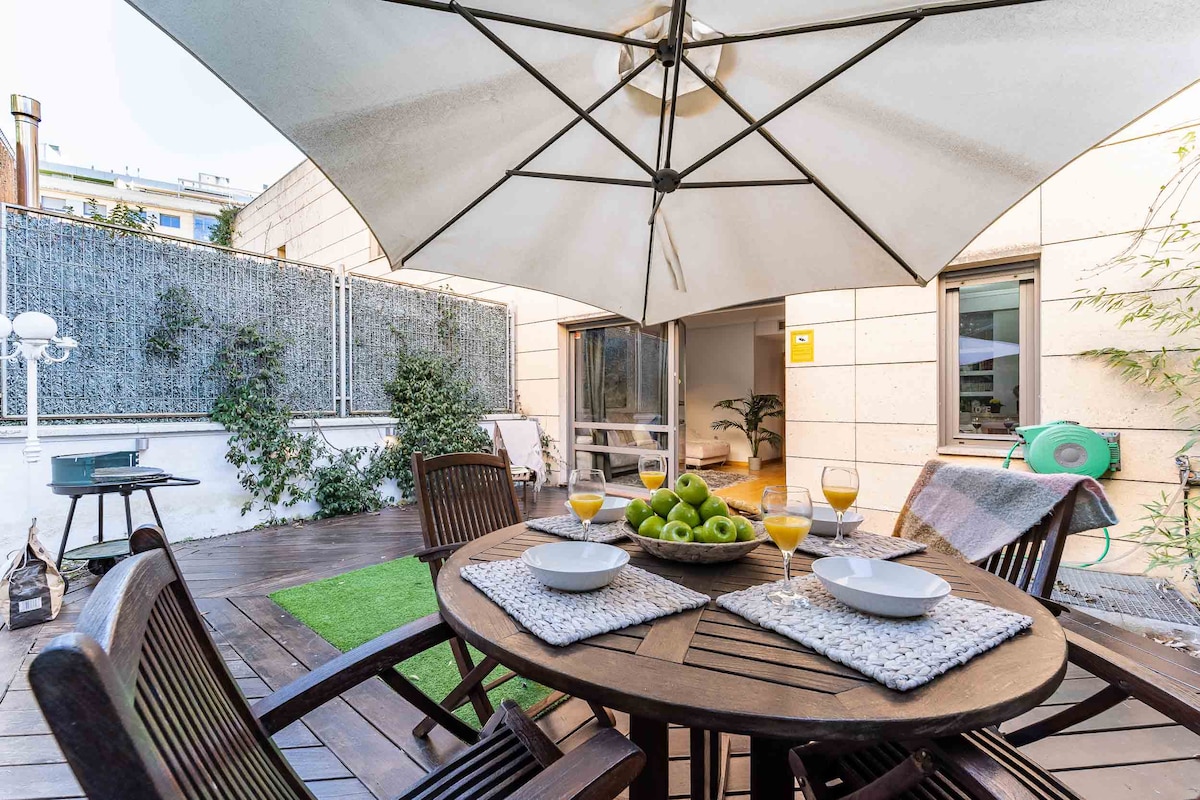 Super bright, spacious penthouse/duplex in the center of Madrid, fully exterior and provided with two private terraces, private parking and swimming pool (open from mid-June to mid-September). Ideal for travelers who are looking for a quiet place to rest at night but centrally located and within walking distance of leisure options. No hassle to get here by car as it is located outside the traffic restricted area called 'Madrid Central'.