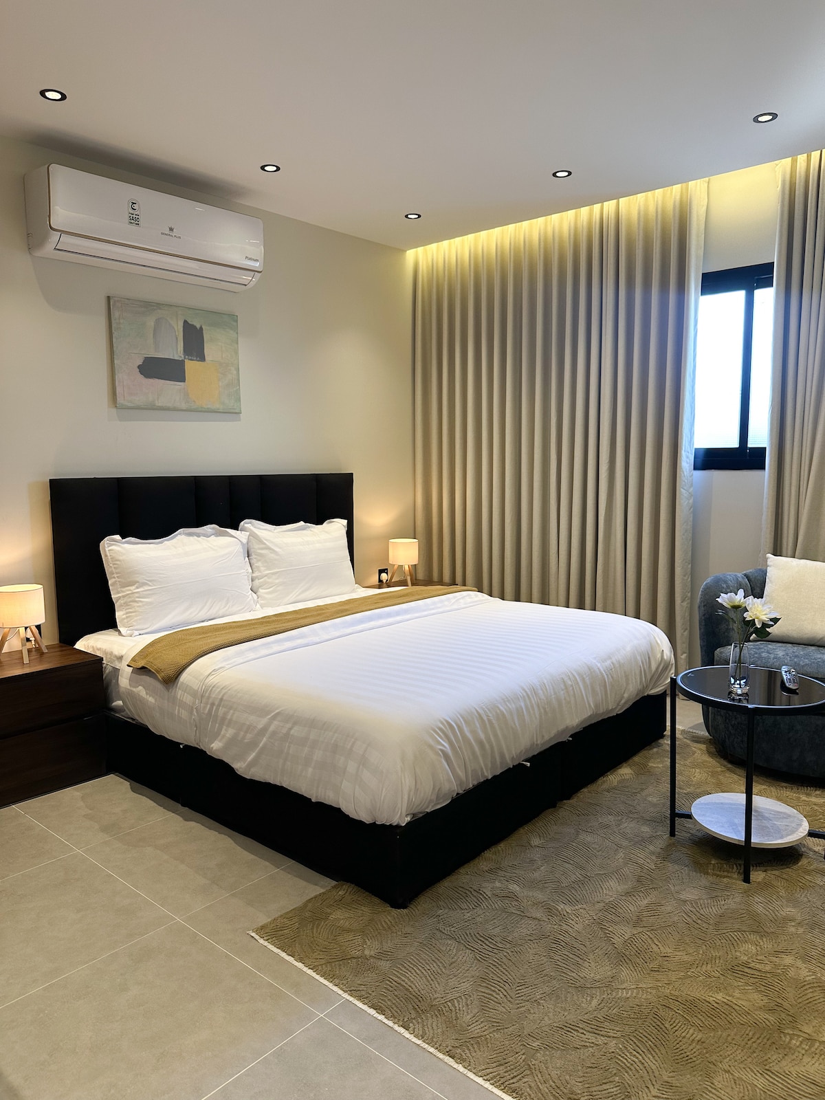 This unique place has a style all its own—designed to offer comfort, elegance, and a touch of luxury. Each room is thoughtfully furnished with chic décor and high-end finishes. Enjoy premium amenities including VIPS experience, QLED flat-screen TVs, tea/coffee machines, hair dryers, plush towels, and a complimentary welcome pack. Whether you're here for a short getaway or a longer stay, you'll feel right at home with our modern comforts and personalized touches.