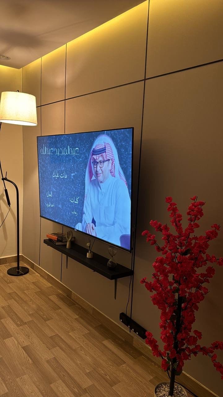 High luxury apartment with: 1- BBQ 2- Outdoor jacuzzi 3- private entrance + self entry 4- waterfall 5- garden 6-projector 7- coffee machine+popcorn maker 8- Kitchen with equipment 9- Hotel Robes, towels and slippers 10- Bose sound sys in all home شقة مودرن عصرية للاستجمام وراحة البال 1- شواية 2- ساوند سيستم كامل بالشقة 3- جاكوزي خارجي 4- مدخل خاص 5- شلال 6- حديقة 7- بروجكتر خارجي 8- قهوة ( بلاك + كبسولات ) + آلةالفشار 9- مطبخ بكامل التجهيزات 10- ارواب و سليبرات فندقية