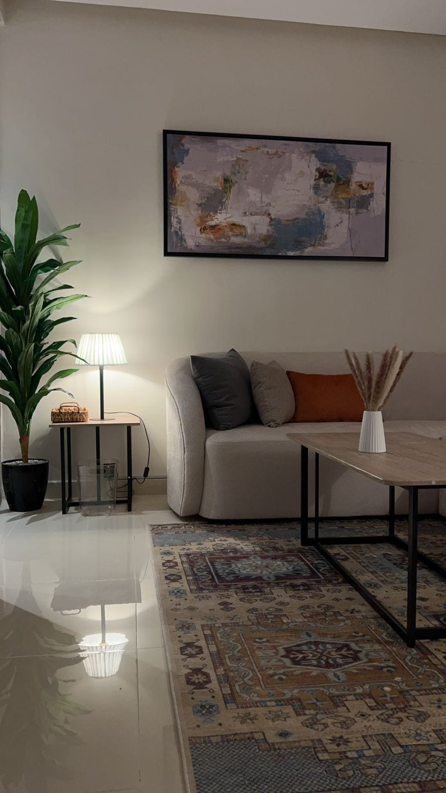 A modern, non-smoking apartment with two bedrooms and a private gym. Alexa and sound system. Ideal for those who prefer privacy, relaxation, and the highest levels of comfort. Private parking, a shared pool, and a shared panoramic city view from the 16th floor. The apartment is located near entertainment events, restaurants, and luxury cafes, including Boulevard World, Kingdom Arena, Diriyah, and King Abdullah Financial District. Enjoy Netflix and OSN services available. Self-serviced check-in.