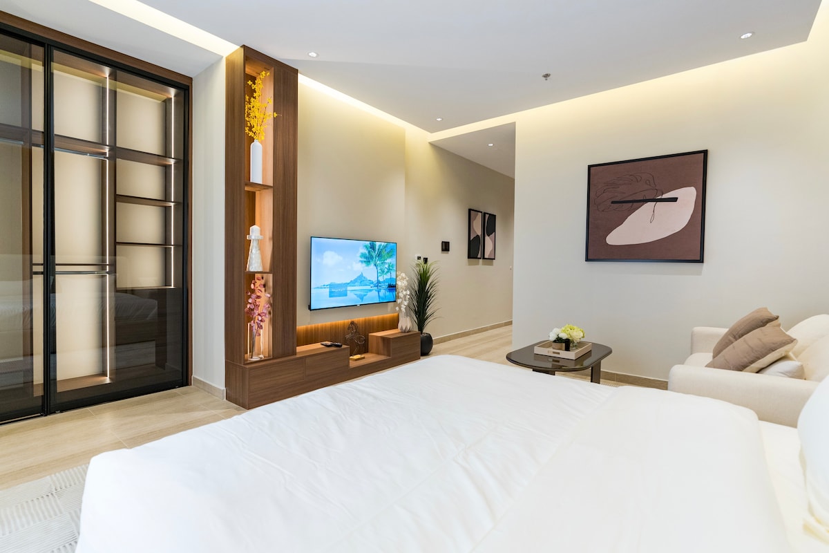 Discover a stylish bohemian retreat in Riyadh — a cozy 3BR apt designed for groups, families, and business travelers. With warm décor, spacious interiors, and access to amenities, this home blends comfort with convenience just 5 minutes from Riyadh Convention Center (RICEC). Unwind in a design-forward living space, enjoy restful nights with premium bedding, or take advantage of the pools and gyms. Whether you’re here for work or leisure, this apartment makes every stay feel easy and memorable.