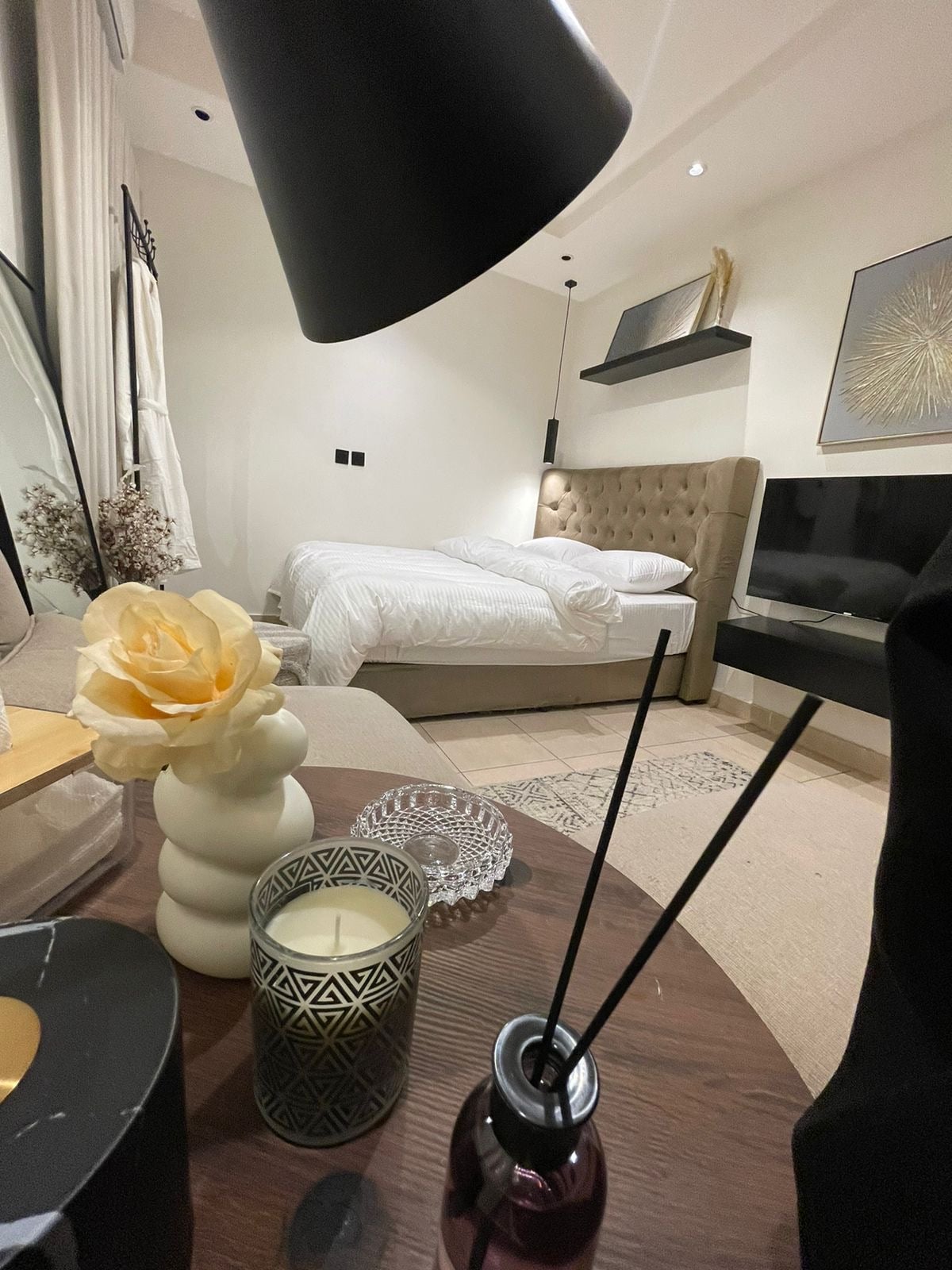 Super Luxury One-Bedroom Apartment – Al Aqiq, RiyadhEnjoy a comfortable stay with modern amenities including free WiFi, a 24-hour front desk, room service, and a garden. Each air-conditioned unit features a kitchenette, balcony, washing machine, streaming TV, and luxury toiletries.Conveniently located just 14 mi from King Khalid International Airport and close to Riyadh Park, Riyadh Gallery Mall, and Diriyah Historical Area and very to KAFD tower.