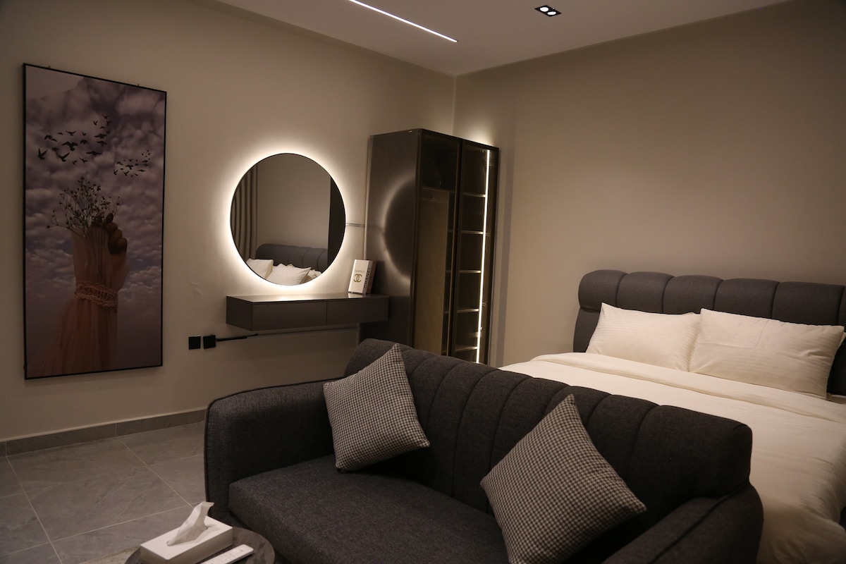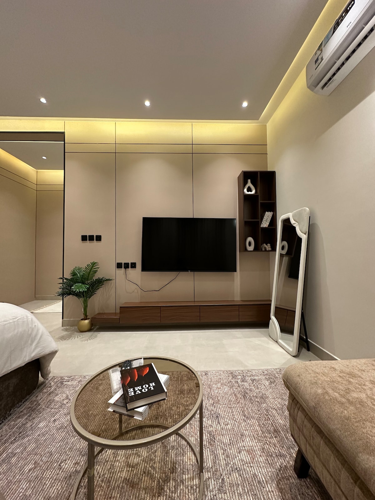 هذا الاستوديو يتميّز بموقعه المثالي في قلب حي الملقا الراقي، وعلى مقربة من البوليفارد والوجهات الحيوية في الرياض. تم تجهيز المسكن بذوقٍ عالٍ ليوفر لك تجربة إقامة فاخرة ومريحة، حيث يحتوي على شاشة 65 بوصة، وسرير كبير جداً يضمن لك أقصى درجات الراحة، بالإضافة إلى أثاث فاخر وتصميم داخلي أنيق يليق بالذوق الرفيع. سواء كنت في زيارة عمل أو للراحة والاستجمام، ستجد في هذا المكان كل ما تحتاج إليه لإقامة استثنائية