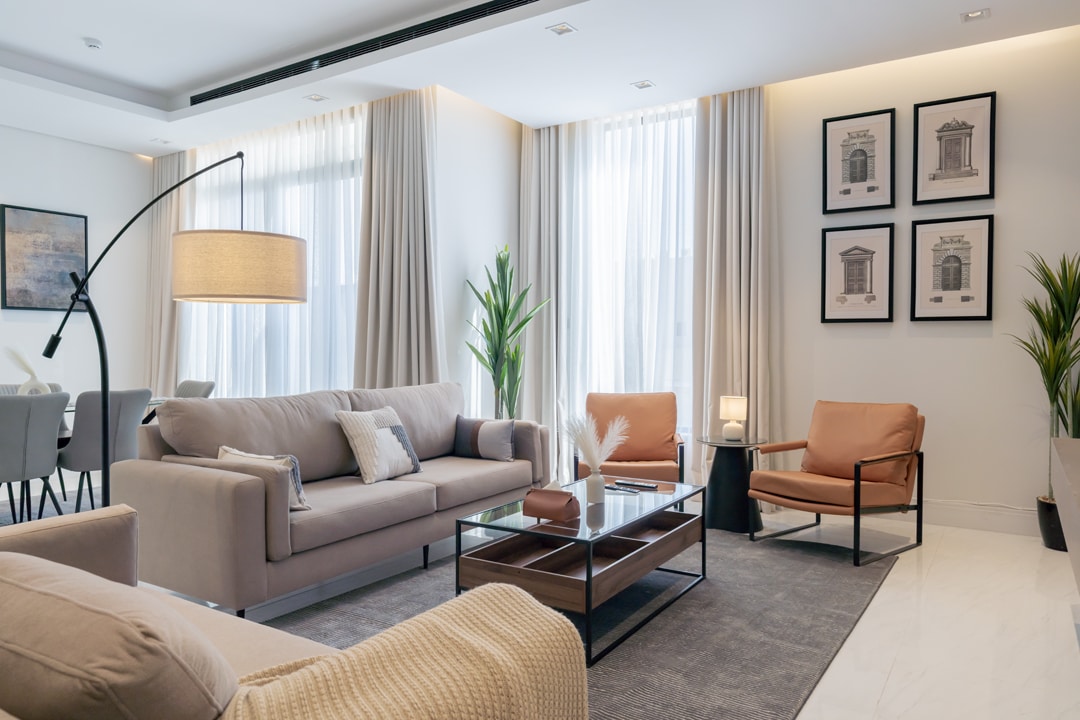 تتميز الشقة بنظام اللوفت العلوي المكون من دورين بتصميمها الأنيق والعصري الذي يعكس نمط نيويورك العصري. توفر الشقة إطلالة فريدة ومميزة على برج المملكة الشهير. بالإضافة إلى ذلك، تتوفر منطقة فناء خارجي تسمح لك بالاستمتاع بالطقس الجميل والاسترخاء بعد يوم طويل. تقع الشقة في حي هادئ و في الوقت نفسه من أرقى أحياء الرياض. هذا الموقع الاستراتيجي في قلب الرياض يجعلها الخيار الأمثل لمن يبحث عن الراحة والرفاهية، بالإضافة إلى الوصول السهل إلى مختلف الخدمات والمرافق.