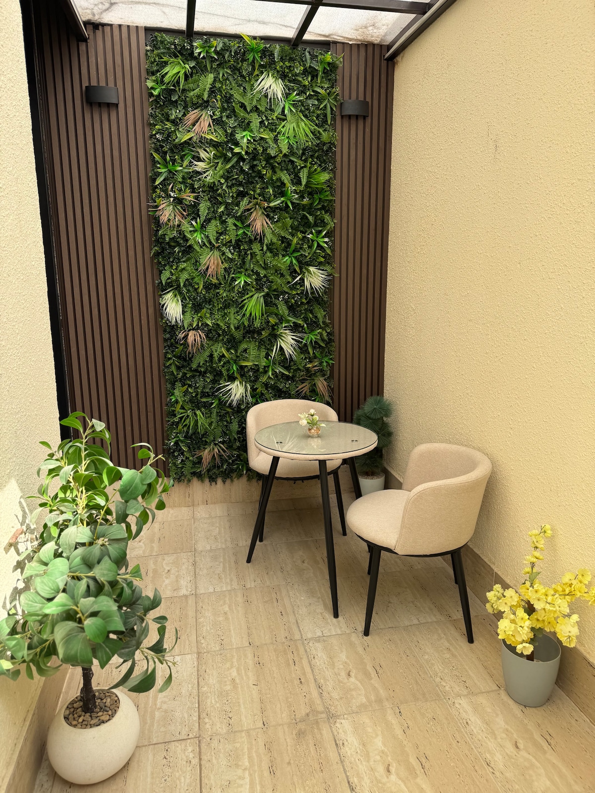 Boho-style retreat in Al Narjis! Cozy 1BR apartment with living area, equipped kitchen, 2 bathrooms, and a 4-seat dining table. Natural plants add freshness, soft lighting and warm tones create a relaxing vibe. Perfect for solo travelers, couples, or short stays. Fast Wi-Fi, AC, and parking included. Enjoy comfort, style, and a peaceful Riyadh stay in a brand-new, inviting space.