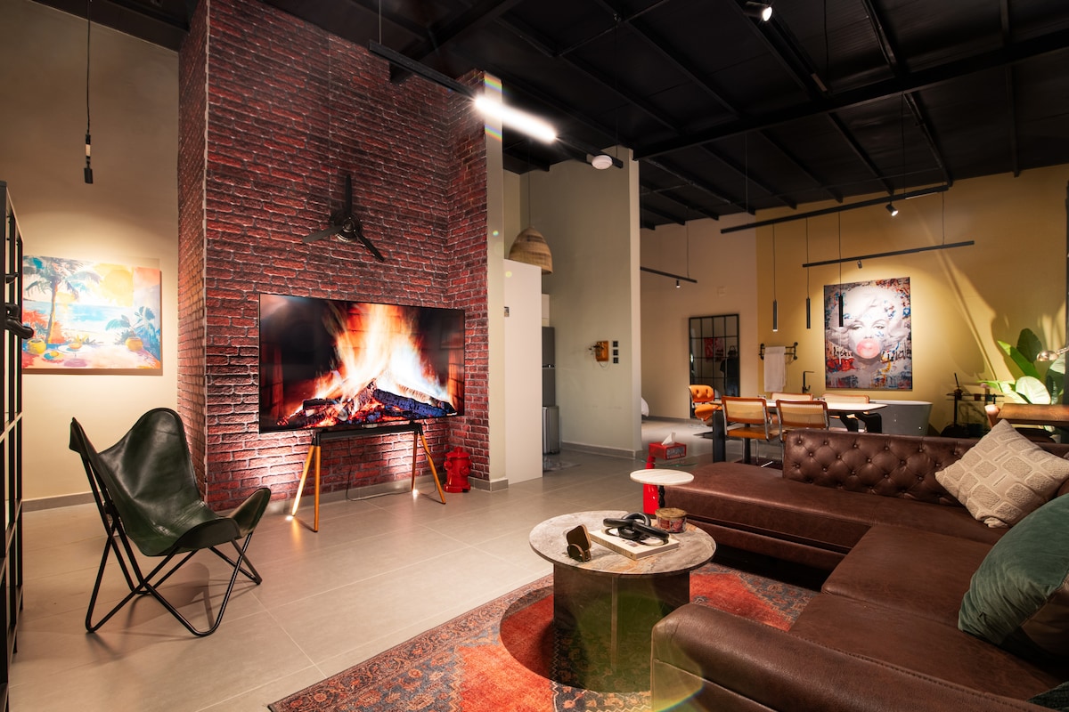 Spacious full-floor apartment in vibrant Tahlia area. Features a living room, dining space, full kitchen plus kitchenette for added convenience. Includes 1 master bedroom with king bed and walk-in closet, and a cozy second bedroom with a queen bed. Step onto the huge rooftop overlooking Tahlia Street complete with a jacuzzi, fireplace, BBQ grill, and outdoor seating.