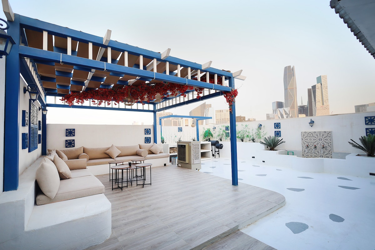 Enjoy a modern stay in Riyadh’s Olaya. This stylish apartment features a private balcony with outdoor seating, a cozy bedroom with smart separation, a comfortable living area, fully equipped kitchenette, in-unit washing machine, and workspace. Just an 8-minute walk to the metro, with Al Jazirah Hypermarket right across the street. The area is vibrant and full of restaurants and cafés—perfect for food lovers and business or leisure stays.