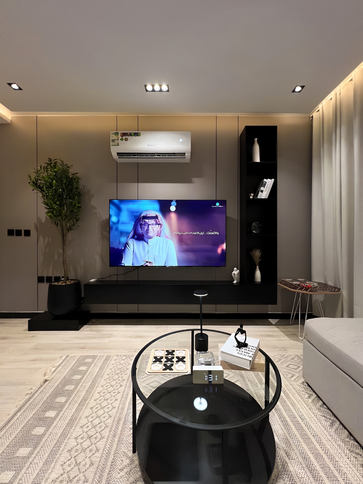 إقامة فاخرة في قلب الرياض، بالقرب من مطار الملك خالد ومحطة مترو اليرموك، بموقع مثالي يتيح وصولًا سريعًا لأهم معالم المدينة. غرفة مع صالة مودرن أنيقة وهادئة بتصميم عصري، يضم سريرًا ناعماً ومخدات فندقية مريحة، مع كنب كبير وشاشة QLED عالية الجودة. ايضا يوجد بانيو او باث توب بمكان مخصص له ووجود مستلزماته كما يتيح لك مشاهدة التلفاز والاسترخاء . 5G وإنترنت , YouTube, Netflix, OSN استمتع باشتراكات سريع ومستقر . تتوفر ميزة العزل الصوتي، الدخول الذاتي، ومواقف مجانية امام العمارة وفي القبو .