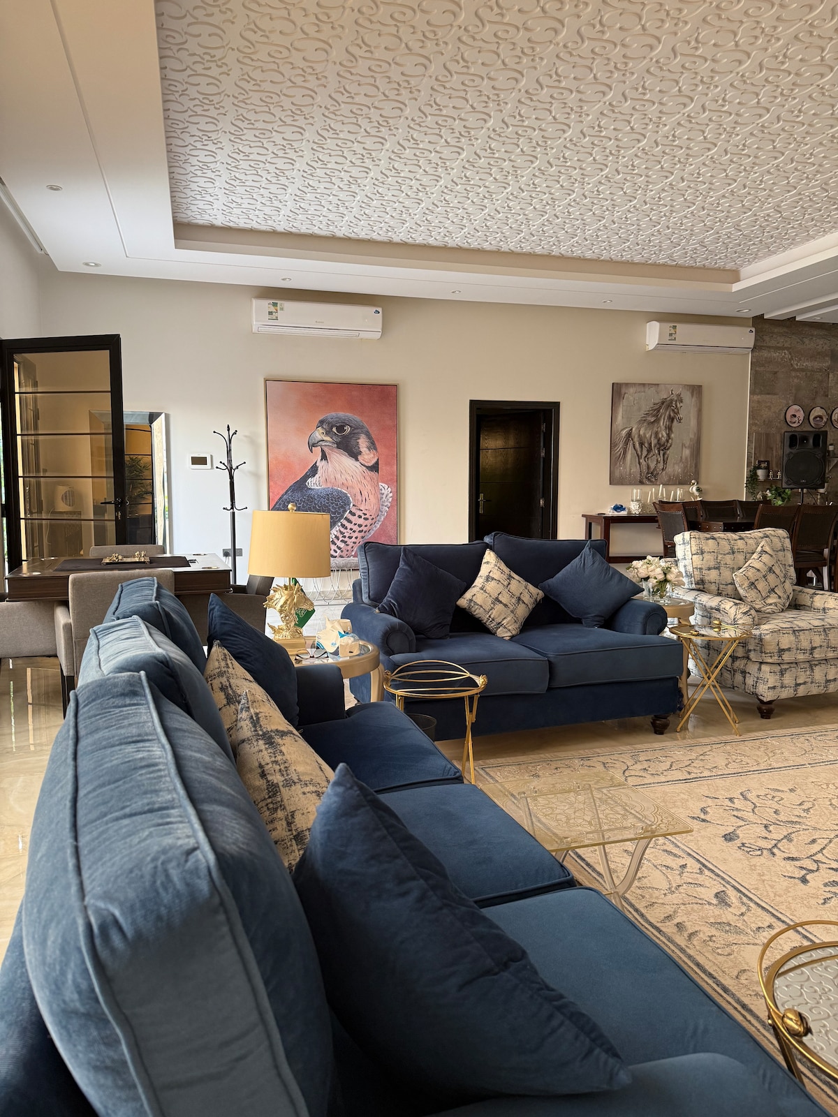A luxurious 450 sqm villa combining elegance and serenity, ideally located on Al Thumama Road, just 15 minutes from King Khalid International Airport. Features a master bedroom with a king bed, a fully equipped kitchen, a stylish dining area, a private pool, and an outdoor seating surrounded by greenery. The perfect retreat for those seeking comfort, privacy, and relaxation. 🌿